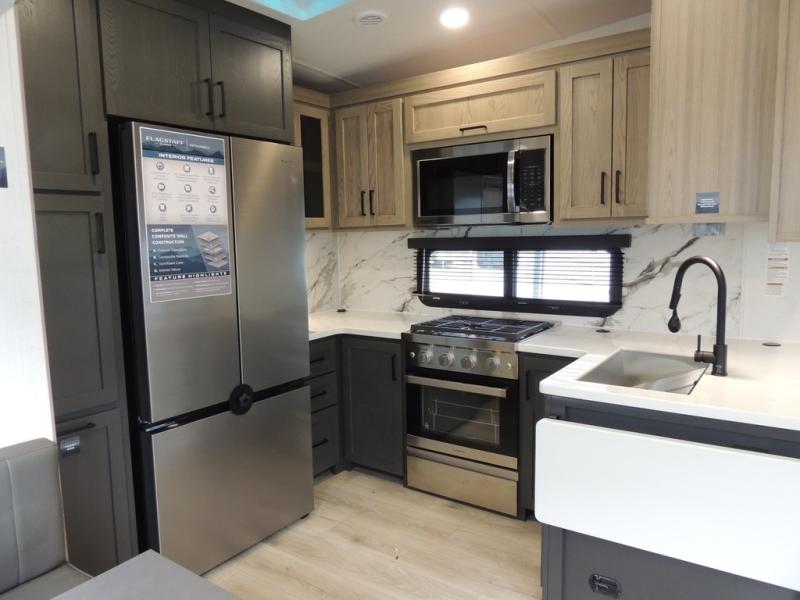 Each one of these Forest River Flagstaff Classic fifth wheels or travel trailers will be your home on wheels! Their quality craftsmanship and attention to detail shines through the enclosed underbelly, the fully laminated walkable roof, and six-sided full-aluminum frame. Towing your unit will be easy with the Goodyear Endurance tires plus RoadTech tire pressure monitoring. Additional exterior features include a 200W solar panel, slam baggage doors, a Key-Alike lock system, and double 30 lb. LP tanks to name a few conveniences. Head inside to find a residential style gas range, solid surface kitchen and bath countertops, soft close hidden cabinet hinges, and more comforts!