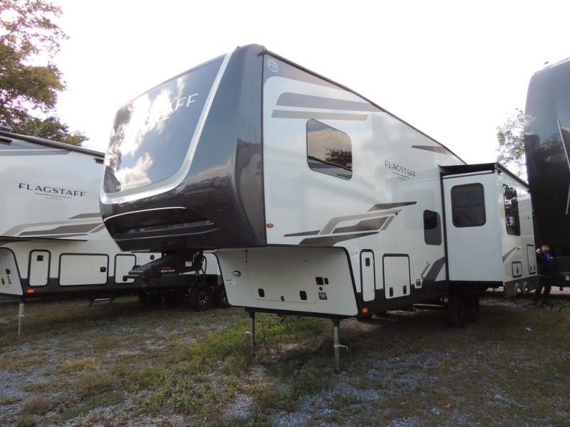 Each one of these Forest River Flagstaff Classic fifth wheels or travel trailers will be your home on wheels! Their quality craftsmanship and attention to detail shines through the enclosed underbelly, the fully laminated walkable roof, and six-sided full-aluminum frame. Towing your unit will be easy with the Goodyear Endurance tires plus RoadTech tire pressure monitoring. Additional exterior features include a 200W solar panel, slam baggage doors, a Key-Alike lock system, and double 30 lb. LP tanks to name a few conveniences. Head inside to find a residential style gas range, solid surface kitchen and bath countertops, soft close hidden cabinet hinges, and more comforts!