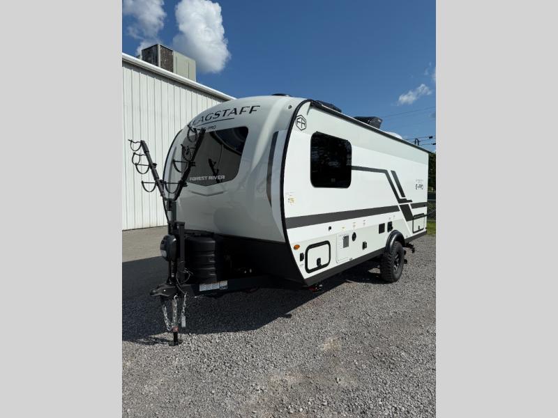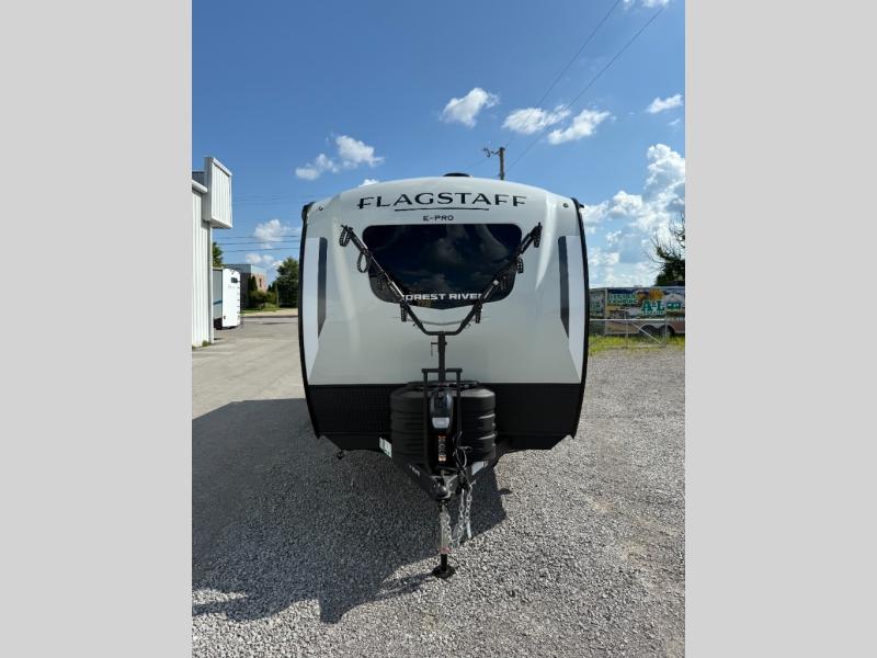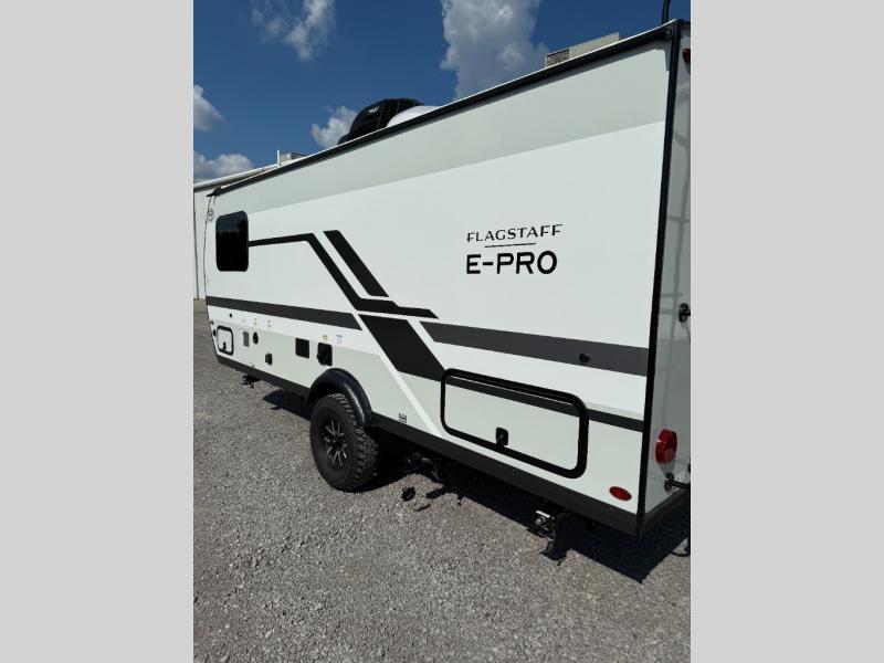With any Flagstaff E-Pro travel trailer by Forest River, you will experience lightweight towing, style and features that will meet your needs, plus amenities that give you more than you expected! Built with interior and exterior composite sidewall construction, tongue and grove plywood flooring, and a vacuum laminated roof and walls, plus torsion axle, Rubber-Ryde suspension, and a tire pressure monitoring system for safety while traveling. And the 200 watt roof mount solar panel with 1,800-watt inverter will allow you to stay off-grid if you like. The interior offers a comfortable environment with the choice to use the air conditioner or furnace, and a 12V entertainment TV with a stereo to stay up to date on your favorite movies. Make your selection today!