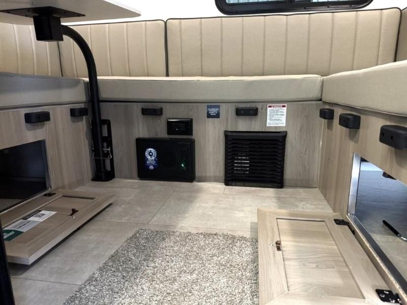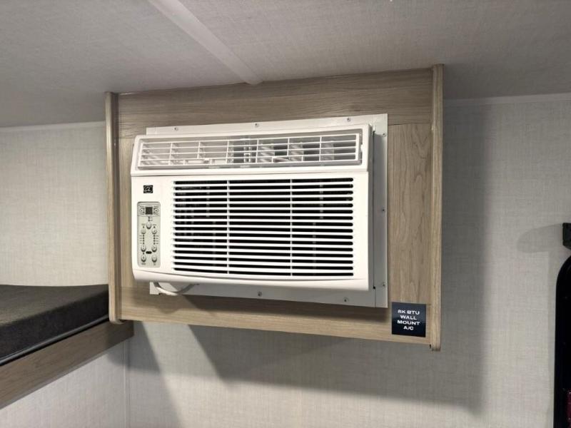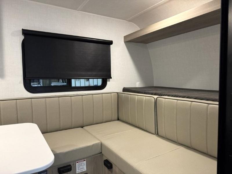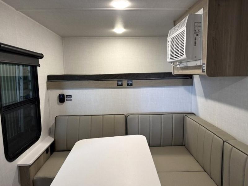 With its practical design, this trailer is designed to make your travels easy and enjoyable. The bunk beds are a fun and practical sleeping solution for kids. Perfect for sleepovers, family gatherings, or outdoor adventures! The U-dinette is a cozy spot for meals and conversation and can convert into two more sleeping spaces. The outside kitchen features a fridge and sink, perfect for alfresco dining and outdoor cooking. The shelf provides ample storage space for outdoor gear, toys, and essentials. Plus, the pass-thru storage allows for easy access to your belongings. The exterior awning creates a comfortable outdoor living space, perfect for relaxing, socializing, or enjoying the great outdoors.