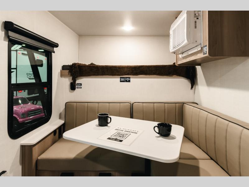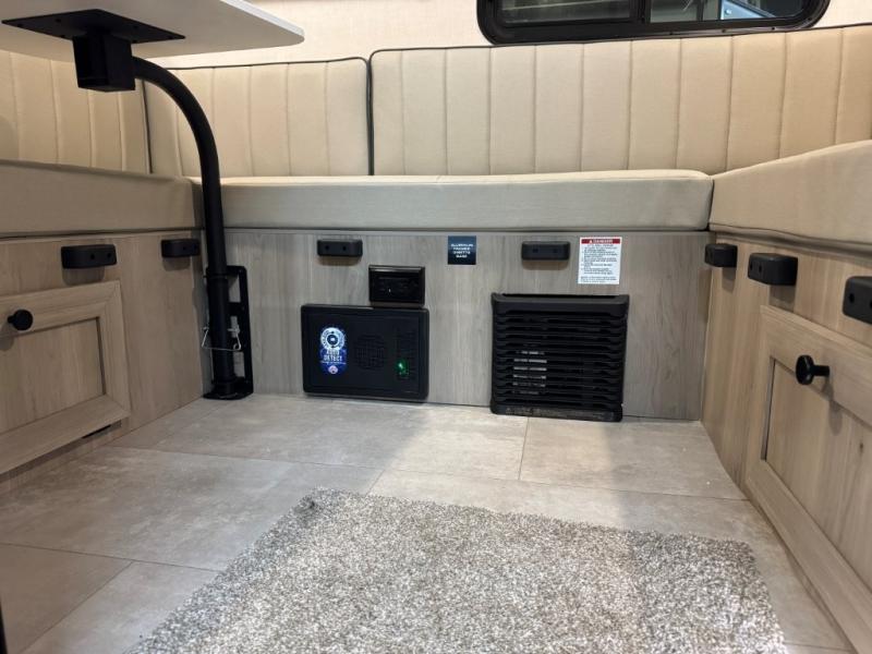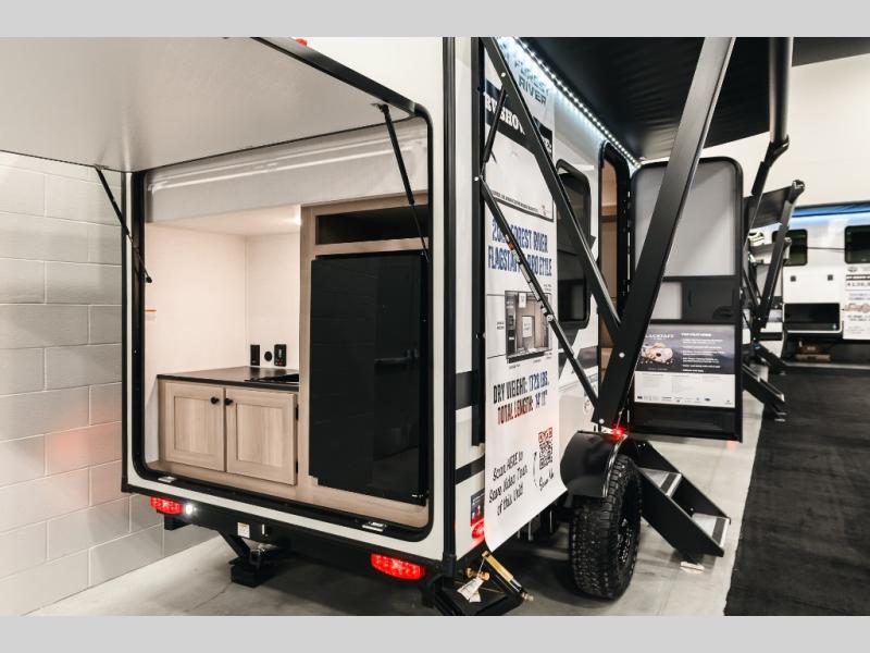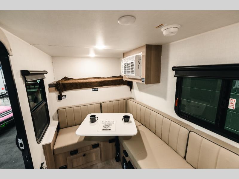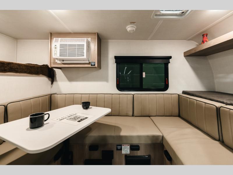 With its practical design, this trailer is designed to make your travels easy and enjoyable. The bunk beds are a fun and practical sleeping solution for kids. Perfect for sleepovers, family gatherings, or outdoor adventures! The U-dinette is a cozy spot for meals and conversation and can convert into two more sleeping spaces. The outside kitchen features a fridge and sink, perfect for alfresco dining and outdoor cooking. The shelf provides ample storage space for outdoor gear, toys, and essentials. Plus, the pass-thru storage allows for easy access to your belongings. The exterior awning creates a comfortable outdoor living space, perfect for relaxing, socializing, or enjoying the great outdoors.