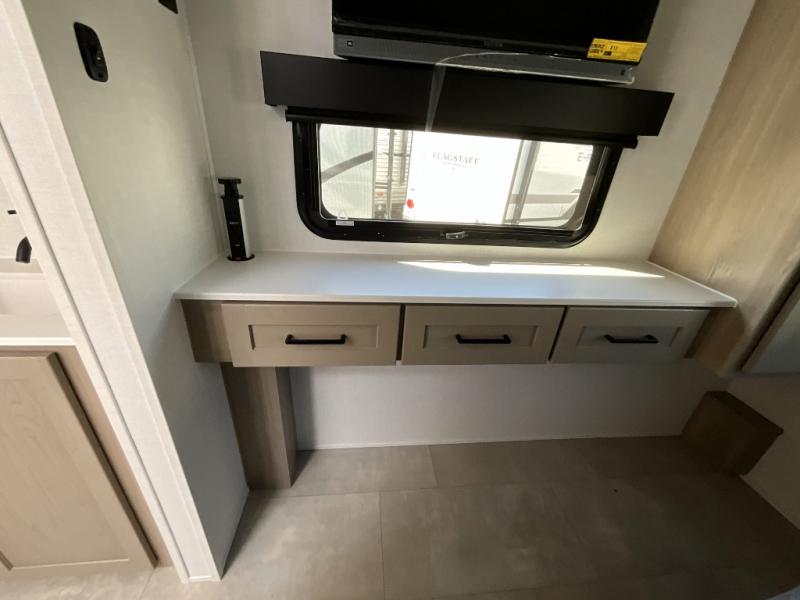 With any Flagstaff E-Pro travel trailer by Forest River, you will experience lightweight towing, style and features that will meet your needs, plus amenities that give you more than you expected! Built with interior and exterior composite sidewall construction for added strength and durability, a fully laminated roof for weather-tight protection, and aluminum truss roof bracing for enhanced stability. These trailers are equipped with Dexter leaf-spring axles for smooth towing and durable performance. The interior features an aluminum dinette, bed, and bunk, providing a strong and lightweight framework for comfortable living. Additionally, the backup camera prep ensures a safe and stress-free reversing experience. Make your selection today!