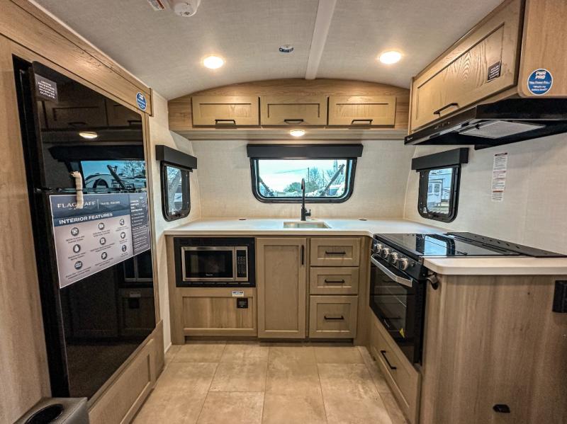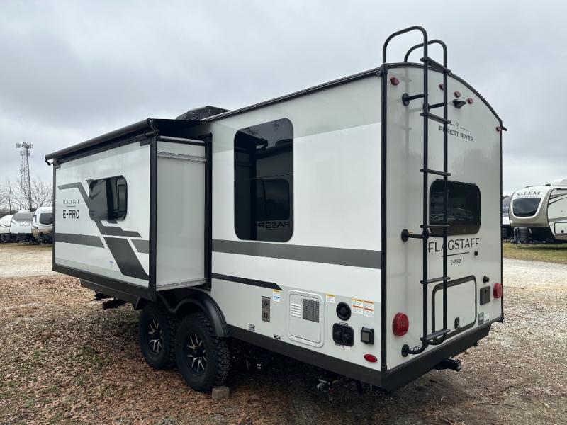 With any Flagstaff E-Pro travel trailer by Forest River, you will experience lightweight towing, style and features that will meet your needs, plus amenities that give you more than you expected! Built with interior and exterior composite sidewall construction for added strength and durability, a fully laminated roof for weather-tight protection, and aluminum truss roof bracing for enhanced stability. These trailers are equipped with Dexter leaf-spring axles for smooth towing and durable performance. The interior features an aluminum dinette, bed, and bunk, providing a strong and lightweight framework for comfortable living. Additionally, the backup camera prep ensures a safe and stress-free reversing experience. Make your selection today!
