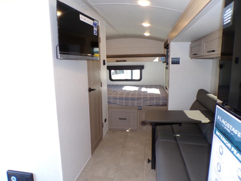 With any Flagstaff E-Pro travel trailer by Forest River, you will experience lightweight towing, style and features that will meet your needs, plus amenities that give you more than you expected! Built with interior and exterior composite sidewall construction for added strength and durability, a fully laminated roof for weather-tight protection, and aluminum truss roof bracing for enhanced stability. These trailers are equipped with Dexter leaf-spring axles for smooth towing and durable performance. The interior features an aluminum dinette, bed, and bunk, providing a strong and lightweight framework for comfortable living. Additionally, the backup camera prep ensures a safe and stress-free reversing experience. Make your selection today!