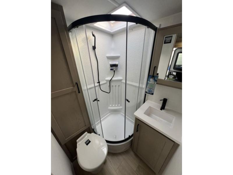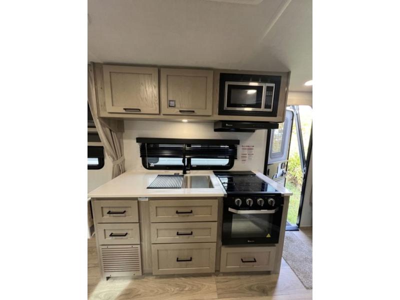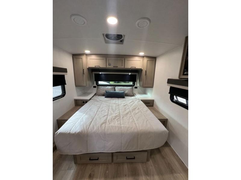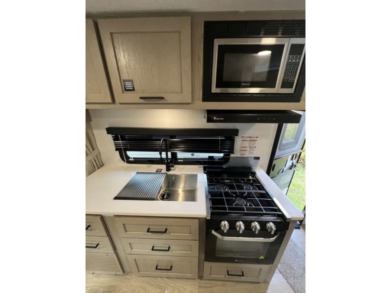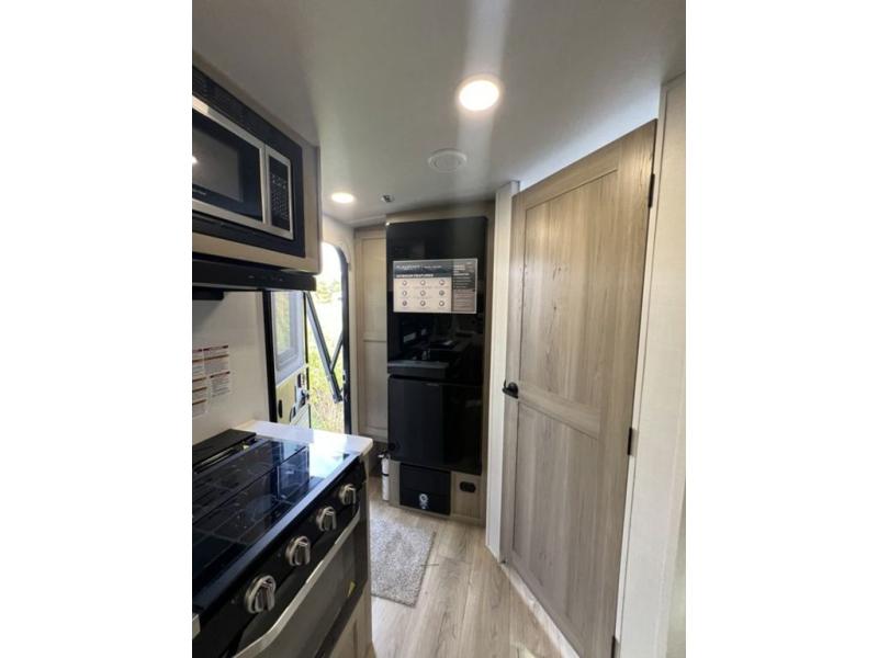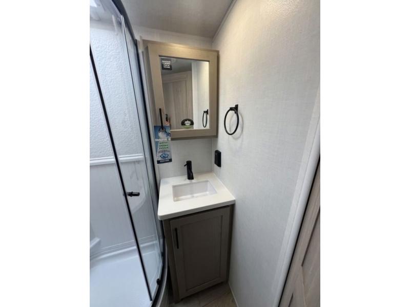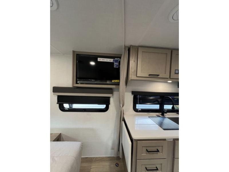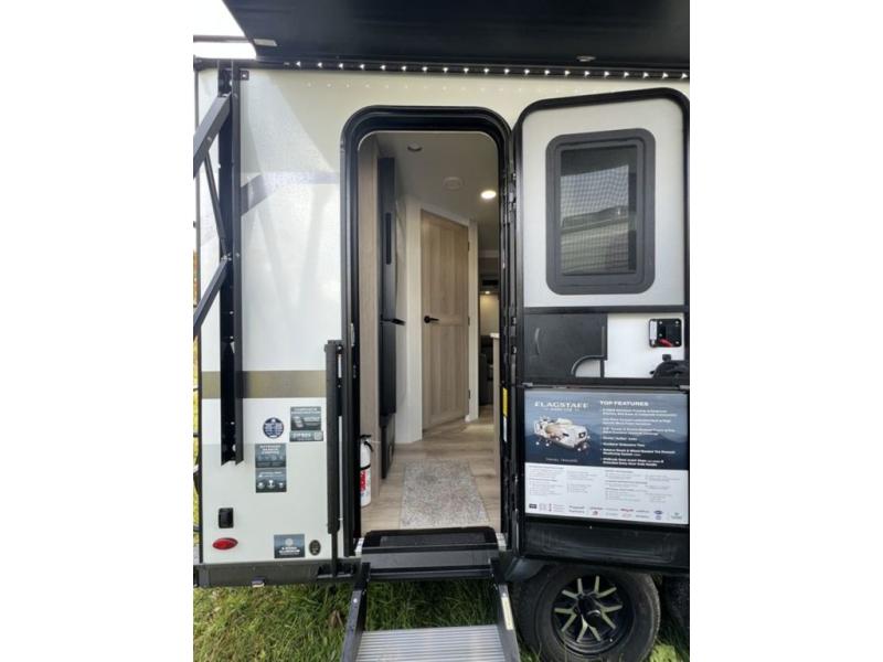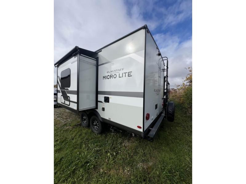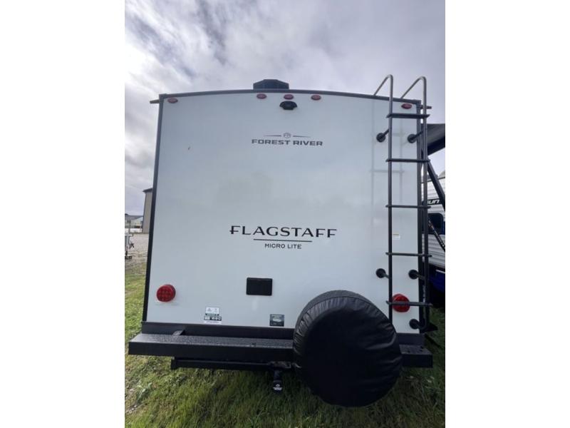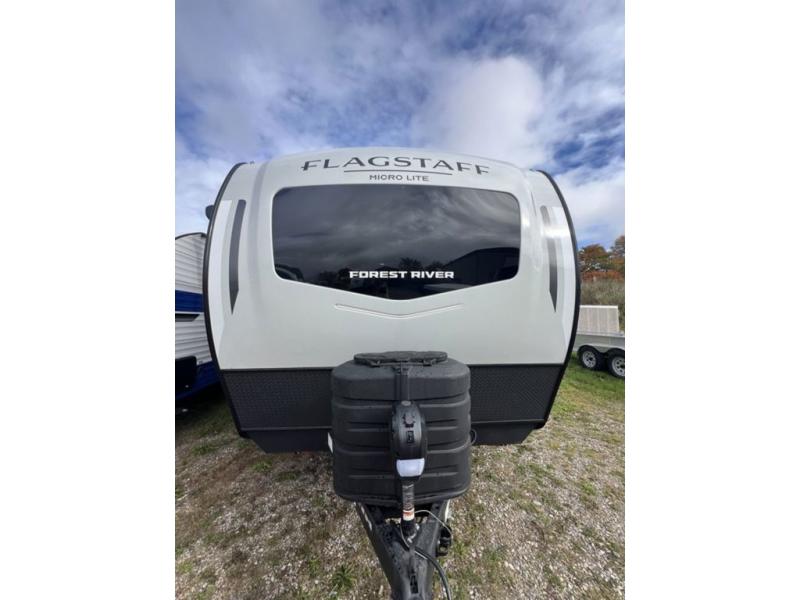 With any Flagstaff Micro Lite travel trailer by Forest River you will enjoy lightweight towing, durable construction, and added interior comforts to make each trip memorable! Each model features RoadTech tire pressure monitoring, Dexter Torflex axles, and nitrogen-filled Goodyear endurance tires for smooth towing from home to campground. The 6-sided aluminum framed construction provides a strong foundation so you can enjoy your RV for years to come, plus the radiant foil in the front cap, underbelly and slides help insulate your trailer. Additional exterior features include a 200W solar panel, back-up camera prep, frameless windows, and slam baggage doors. Each model includes the Great Expectations Package with roller shades, solid surface kitchen countertops, and hidden hinge cabinet doors. There is also an exterior hot/cold water port, outside speakers, a power tongue jack and stabilizer jacks, plus many more conveniences.