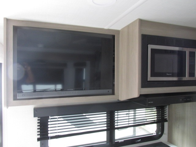 Camping in this single slide out travel trailer will make weekends at the campground comfy and hassle-free! Once you arrive, you can unload the pass-through storage, put out the 18' power awning, then relax in your camp chairs. And there is a full interior kitchen to make meals when you get hungry. Everyone can gather around the U-shaped dinette slide for meal times or game night, and there is a spacious pantry where you can store snacks! The bunk beds include a flip-up bottom bunk and an exterior bike door so you can easily pack camp gear away, and the full bath is right next to the bunks for easy nighttime use. Head up front to enjoy your own private bedroom with an RV queen bed, dual wardrobes, and flip-up storage!