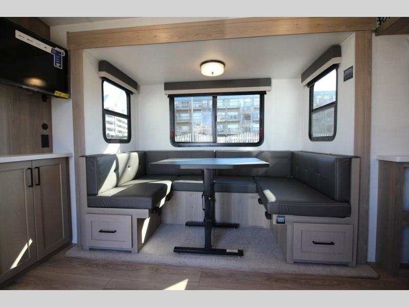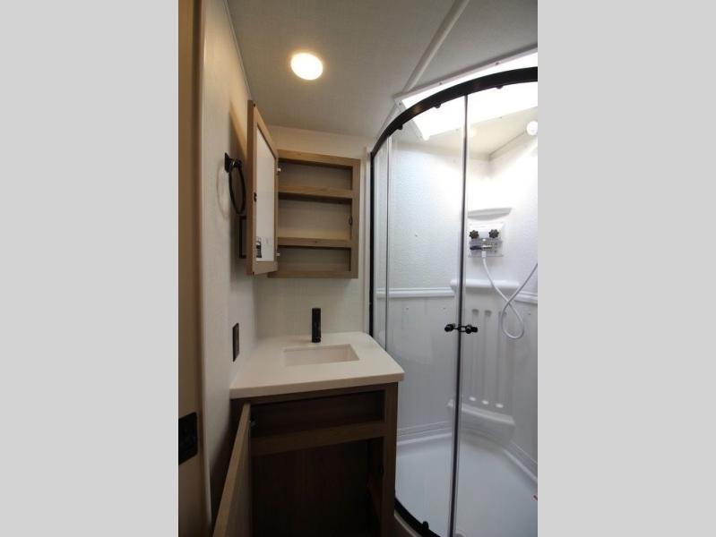 Each Flagstaff Shamrock expandable by Forest River includes an enclosed underbelly, interior and exterior composite sidewall construction, and a vinyl/rubber composite roofing membrane for added durability. The power tongue jack will make hitching up easier than ever, and the torsion axle, Rubber-Ryde suspension and Goodyear Endurance tires will provide smooth towing. You will also appreciate having a 200W roof solar panel with a 1800W inverter, an outside spray port, Keyed-Alike locks, plus many more exterior conveniences. The interior is made to feel more like home with solid wood cabinet doors and drawers, marine grade carpet in the slides, Sedona Wood cabinetry, plus seamless kitchen countertops.