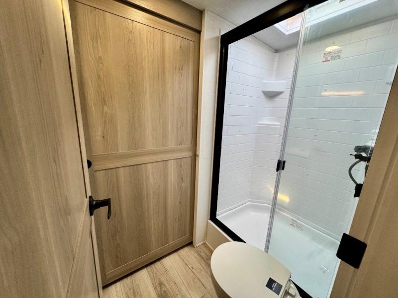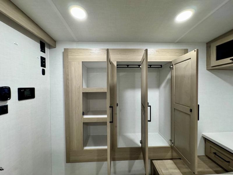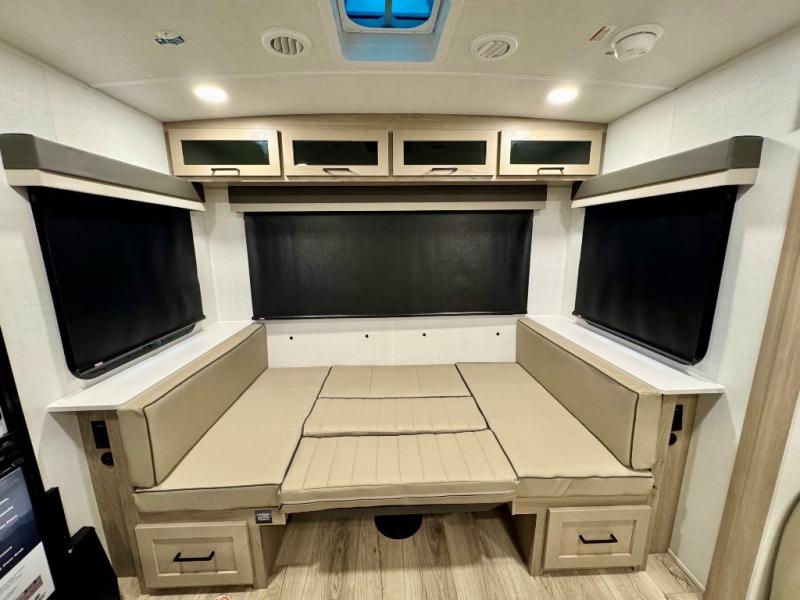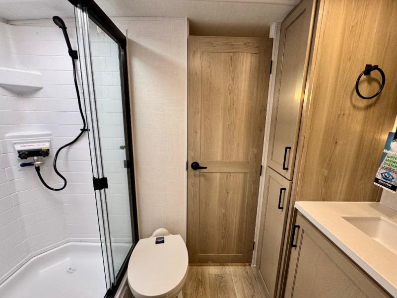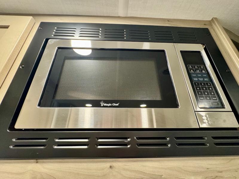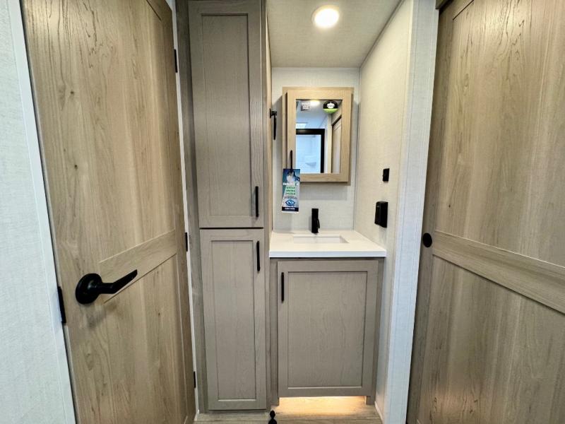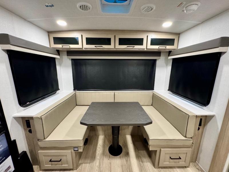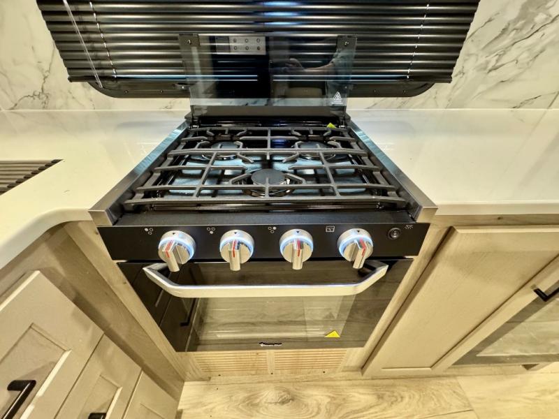 It will be so easy to enjoy time at the campground in this cozy travel trailer. The full kitchen includes a three burner gas oven, a microwave oven, and a 12V refrigerator to cook and store food, and the pantry will let you stock up on snacks. Your crew can get comfortable on the theater seat or around the rear U-shaped dinette, and there is a smart TV here to make it a movie night. The walk-thru bath will let you freshen up each day, and the queen bed in the front bedroom is sure to bring comfort. You will also find one of the dual entry doors here for convenience plus a wardrobe slide out for more storage and floor space. The exterior is just as accommodating with its pass-thru storage, 2" receiver hitch, and 21' power awning!