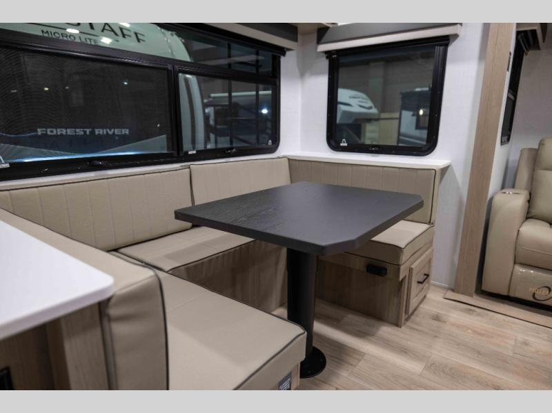 With any Flagstaff Super Lite travel trailer by Forest River, you can enjoy quality features with lightweight towing! The Climate Protection Package includes radiant foil in the front cap, underbelly, and slides, plus there are 12V thermostat-controlled heated tanks for added protection. The complete composite wall construction and 6-sided full-aluminum frame is ultra durable, and the RoadTech tire pressure monitoring adds safety. Each model also includes the Coast to Coast Package that comes with slam latch baggage doors, a high gloss fiberglass cap, Goodyear Endurance tires, plus a 200W solar panel with an optional additional 200W panel for more off grid capabilities. Inside, you'll love the roller shades, solid surface kitchen countertops, a shower miser system, and many more comforts!