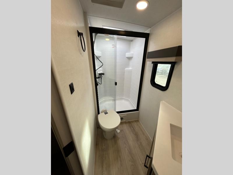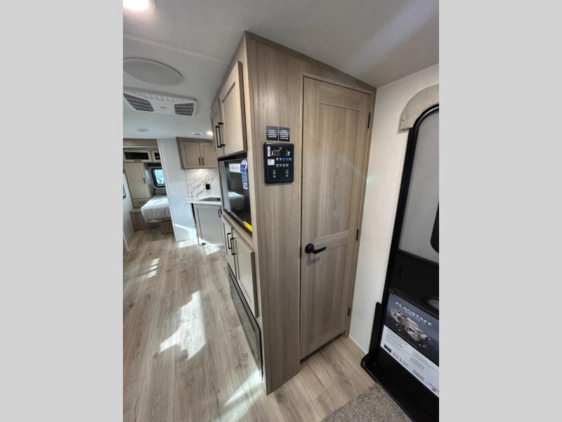 With any Flagstaff Super Lite travel trailer by Forest River, you can enjoy quality features with lightweight towing! The Climate Protection Package includes radiant foil in the front cap, underbelly, and slides, plus there are 12V thermostat-controlled heated tanks for added protection. The complete composite wall construction and 6-sided full-aluminum frame is ultra durable, and the RoadTech tire pressure monitoring adds safety. Each model also includes the Coast to Coast Package that comes with slam latch baggage doors, a high gloss fiberglass cap, Goodyear Endurance tires, plus a 200W solar panel with an optional additional 200W panel for more off grid capabilities. Inside, you'll love the roller shades, solid surface kitchen countertops, a shower miser system, and many more comforts!