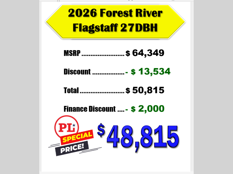 New 2026 Forest River RV Flagstaff Super Lite 27DBH Travel Trailer