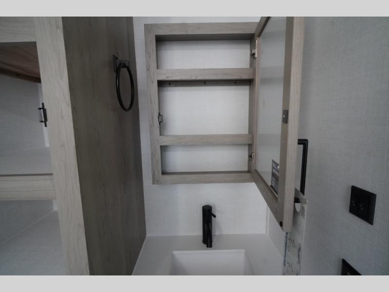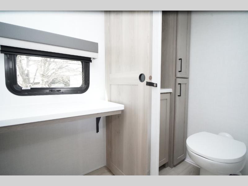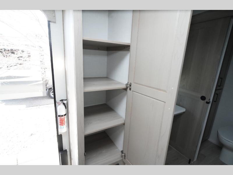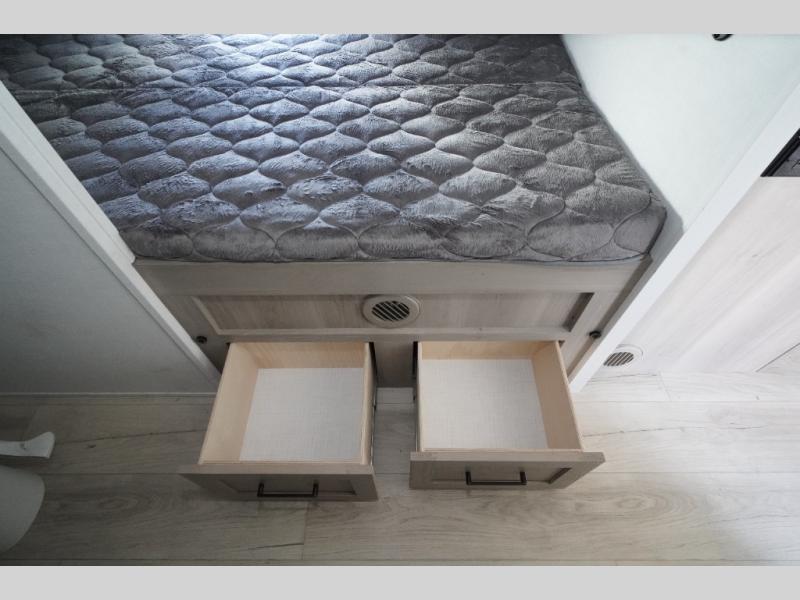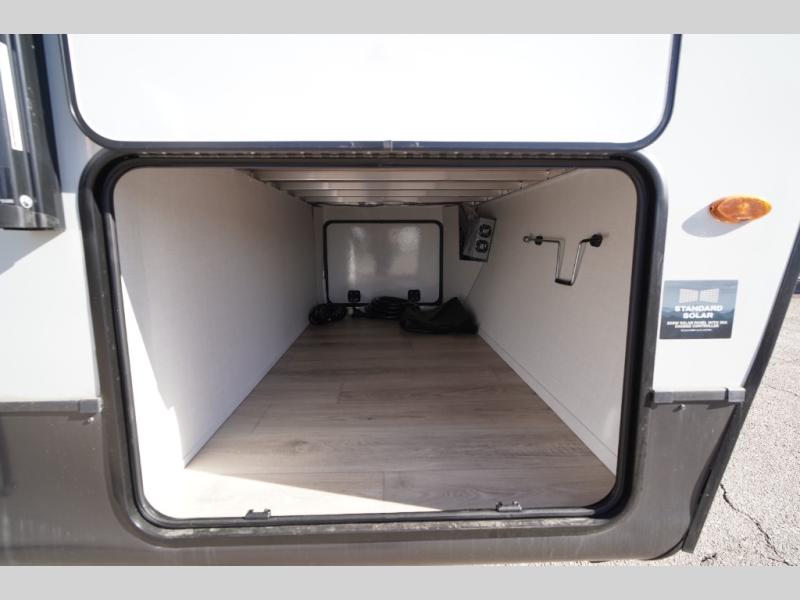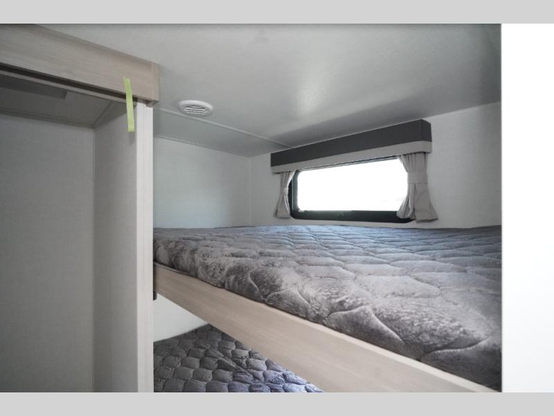 Get ready for a fun camping experience with your family and friends in this trailer that sleeps five to six! There is a rear bunkhouse suite with 43" x 74" bunks, a desk, and a half bath for added convenience. You will also find a front master bedroom with a queen bed, easy access to the walk-thru bath, and one of the dual entry doors. There is abundant storage for your snacks and dry ingredients in the pantry/wardrobe, your cold items in the 12V refrigerator, and throughout the interior and along the exterior. You can load the larger gear in the front pass-thru with an optional steel sliding tray, and other outdoor items in the rear or side storage compartments.