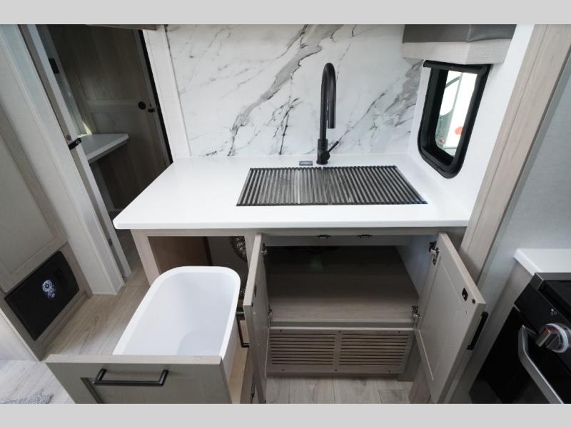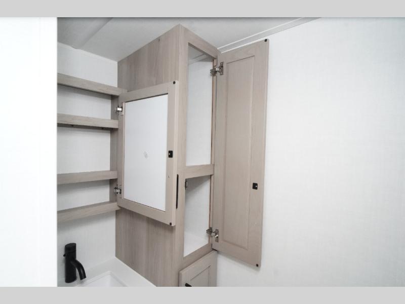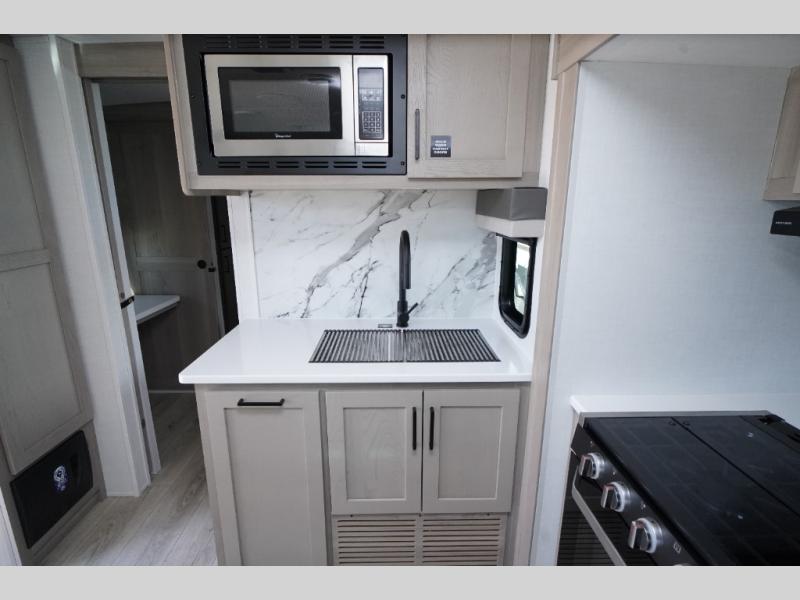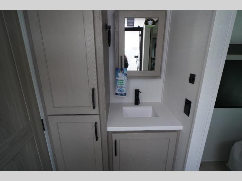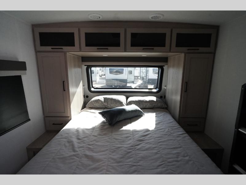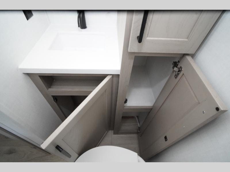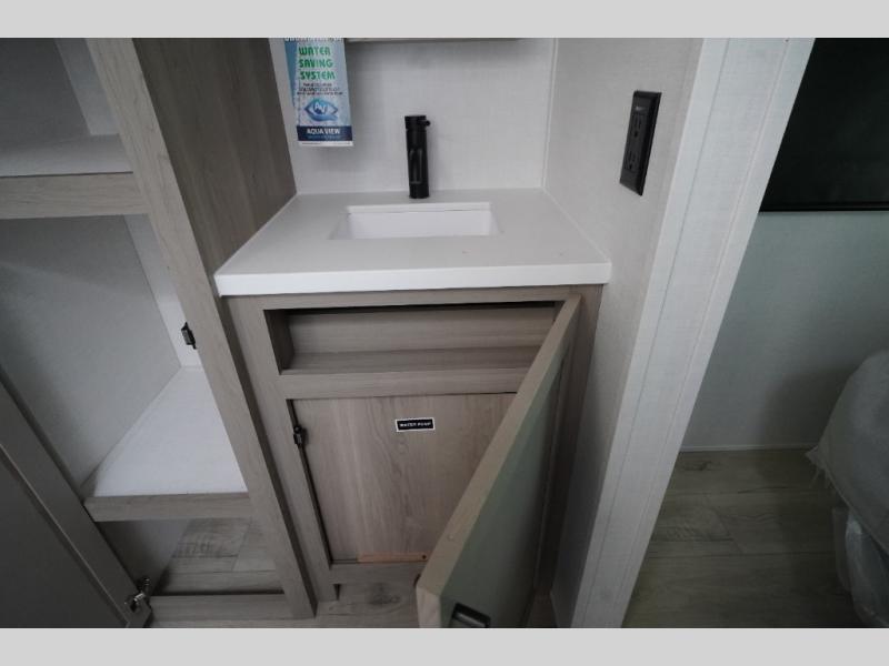 Get ready for a fun camping experience with your family and friends in this trailer that sleeps five to six! There is a rear bunkhouse suite with 43" x 74" bunks, a desk, and a half bath for added convenience. You will also find a front master bedroom with a queen bed, easy access to the walk-thru bath, and one of the dual entry doors. There is abundant storage for your snacks and dry ingredients in the pantry/wardrobe, your cold items in the 12V refrigerator, and throughout the interior and along the exterior. You can load the larger gear in the front pass-thru with an optional steel sliding tray, and other outdoor items in the rear or side storage compartments.