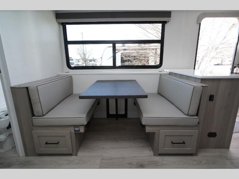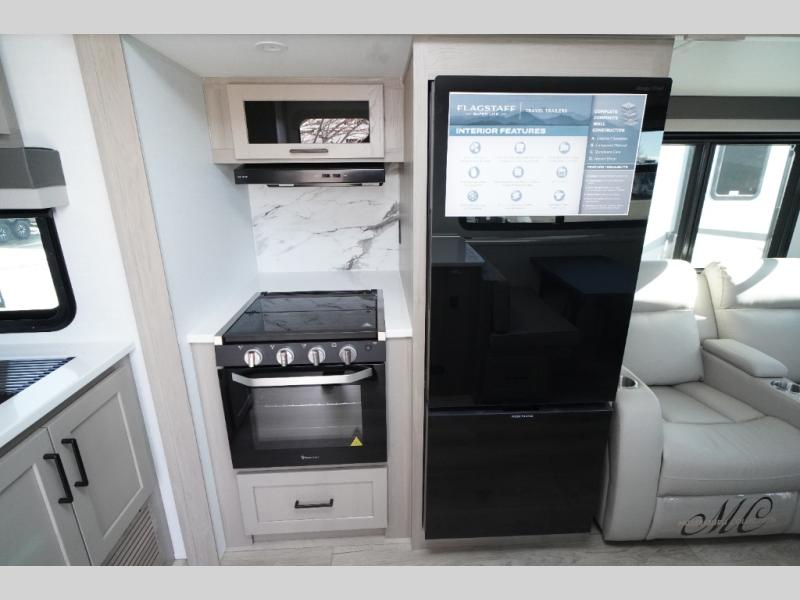 With any Flagstaff Super Lite travel trailer by Forest River, you can enjoy quality features with lightweight towing! The Climate Protection Package includes radiant foil in the front cap, underbelly, and slides, plus there are 12V thermostat-controlled heated tanks for added protection. The complete composite wall construction and 6-sided full-aluminum frame is ultra durable, and the RoadTech tire pressure monitoring adds safety. Each model also includes the Coast to Coast Package that comes with slam latch baggage doors, a high gloss fiberglass cap, Goodyear Endurance tires, plus a 200W solar panel with an optional additional 200W panel for more off grid capabilities. Inside, you'll love the roller shades, solid surface kitchen countertops, a shower miser system, and many more comforts!