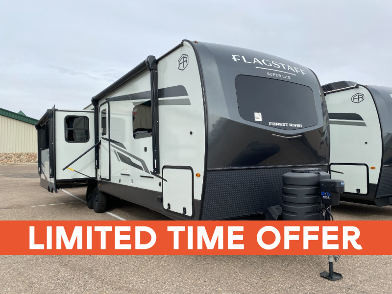 With any Flagstaff Super Lite travel trailer by Forest River, you can enjoy quality features with lightweight towing! The Climate Protection Package includes radiant foil in the front cap, underbelly, and slides, plus there are 12V thermostat-controlled heated tanks for added protection. The complete composite wall construction and 6-sided full-aluminum frame is ultra durable, and the RoadTech tire pressure monitoring adds safety. Each model also includes the Coast to Coast Package that comes with slam latch baggage doors, a high gloss fiberglass cap, Goodyear Endurance tires, plus a 200W solar panel with an optional additional 200W panel for more off grid capabilities. Inside, you'll love the roller shades, solid surface kitchen countertops, a shower miser system, and many more comforts!