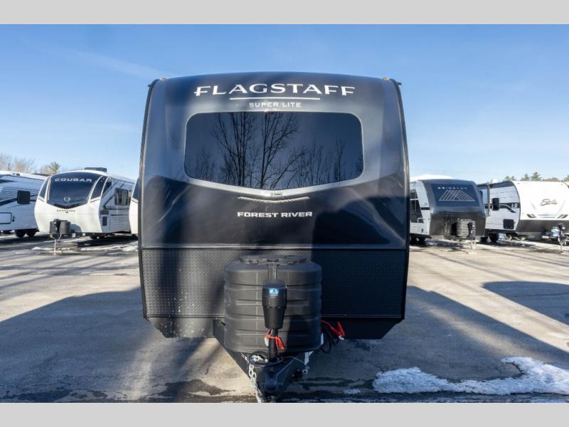 With any Flagstaff Super Lite travel trailer by Forest River, you can enjoy quality features with lightweight towing! The Climate Protection Package includes radiant foil in the front cap, underbelly, and slides, plus there are 12V thermostat-controlled heated tanks for added protection. The complete composite wall construction and 6-sided full-aluminum frame is ultra durable, and the RoadTech tire pressure monitoring adds safety. Each model also includes the Coast to Coast Package that comes with slam latch baggage doors, a high gloss fiberglass cap, Goodyear Endurance tires, plus a 200W solar panel with an optional additional 200W panel for more off grid capabilities. Inside, you'll love the roller shades, solid surface kitchen countertops, a shower miser system, and many more comforts!