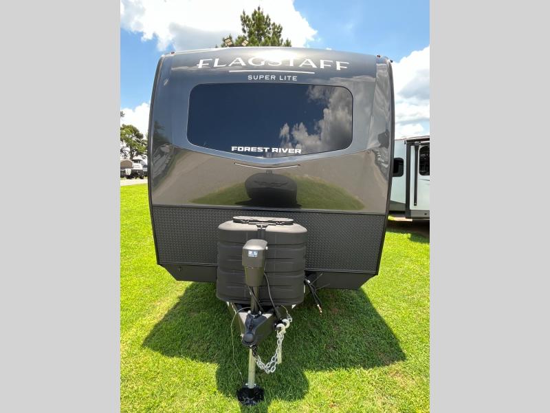 With any Flagstaff Super Lite travel trailer by Forest River, you can enjoy quality features with lightweight towing! The Climate Protection Package includes radiant foil in the front cap, underbelly, and slides, plus there are 12V thermostat-controlled heated tanks for added protection. The complete composite wall construction and 6-sided full-aluminum frame is ultra durable, and the RoadTech tire pressure monitoring adds safety. Each model also includes the Coast to Coast Package that comes with slam latch baggage doors, a high gloss fiberglass cap, Goodyear Endurance tires, plus a 200W solar panel with an optional additional 200W panel for more off grid capabilities. Inside, you'll love the roller shades, solid surface kitchen countertops, a shower miser system, and many more comforts!