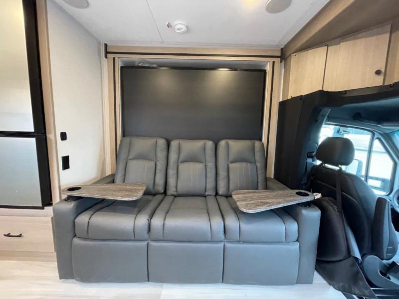 With any Forester MBS Class C diesel motorhome by Forest River, you will have a diesel Mercedes chassis, a 10" touch screen with CarPlay/Android radio with USB and Bluetooth, plus a backup camera with side view cameras and 3-way monitor to easily maneuver the road. The Gateway 4G WiFi capability and Winegard Air 360+ digital antenna will help keep you connected, and the optional 190W charging system gives you the option to go off-grid if you choose. The spacious living area and well-appointed décor will make you feel at home, plus the bathroom's motion sensor light and oxygen-infused shower head with a flexible extension will provide the comfort and style you are wanting in your next RV!