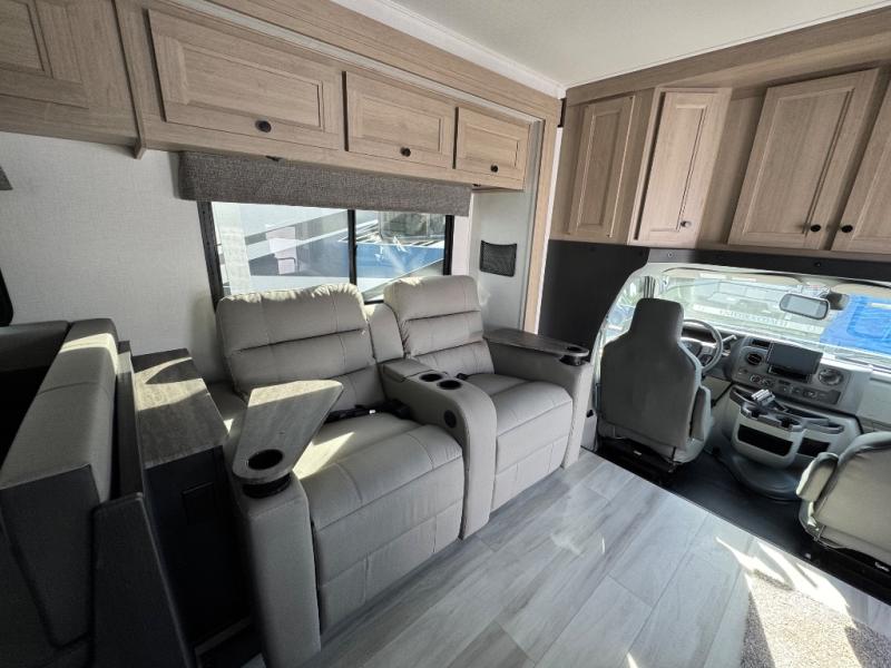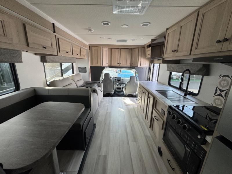 With any Forester Classic Class C gas motorhome by Forest River you will enjoy comfort at every turn! They offer a smooth ride with the EZ Ryde premium suspension system, and the ultra leather captain's seats will ensure comfort wherever you go. There are heated, enclosed holding tanks and valves plus block foam insulation to enjoy four-seasons camping, and the gel coat exterior fiberglass is slick and easy to keep clean. A keyless entry comes standard for your convenience, along with a color back-up camera and side view cameras with a 3-way monitor for added safety when parking. The Forester Classic motorhomes also include a Maxx Air multi-speed power fan with a cover, a shower skylight, a cordless 12V charging plate, plus black out roller shades for privacy any time.