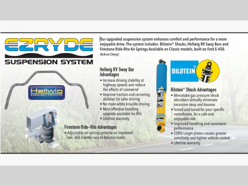 With any Forester Classic Class C gas motorhome by Forest River you will enjoy comfort at every turn! They offer a smooth ride with the EZ Ryde premium suspension system, and the ultra leather captain's seats will ensure comfort wherever you go. There are heated, enclosed holding tanks and valves plus block foam insulation to enjoy four-seasons camping, and the gel coat exterior fiberglass is slick and easy to keep clean. A keyless entry comes standard for your convenience, along with a color back-up camera and side view cameras with a 3-way monitor for added safety when parking. The Forester Classic motorhomes also include a Maxx Air multi-speed power fan with a cover, a shower skylight, a cordless 12V charging plate, plus black out roller shades for privacy any time.