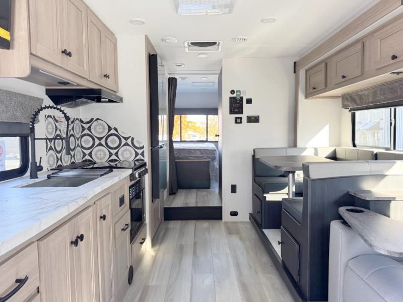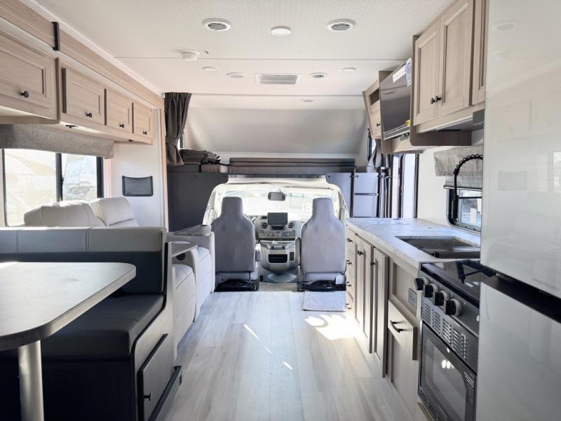 With any Forester Classic Class C gas motorhome by Forest River you will enjoy comfort at every turn! They offer a smooth ride with the EZ Ryde premium suspension system, and the ultra leather captain's seats will ensure comfort wherever you go. There are heated, enclosed holding tanks and valves plus block foam insulation to enjoy four-seasons camping, and the gel coat exterior fiberglass is slick and easy to keep clean. A keyless entry comes standard for your convenience, along with a color back-up camera and side view cameras with a 3-way monitor for added safety when parking. The Forester Classic motorhomes also include a Maxx Air multi-speed power fan with a cover, a shower skylight, a cordless 12V charging plate, plus black out roller shades for privacy any time.