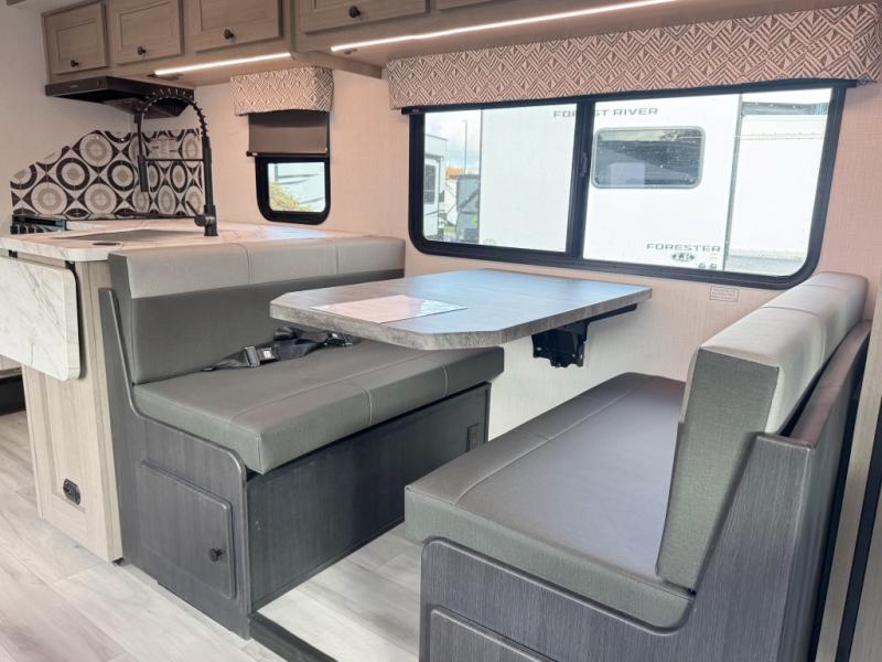 With any Forester Classic Class C gas motorhome by Forest River you will enjoy comfort at every turn! They offer a smooth ride with the EZ Ryde premium suspension system, and the ultra leather captain's seats will ensure comfort wherever you go. There are heated, enclosed holding tanks and valves plus block foam insulation to enjoy four-seasons camping, and the gel coat exterior fiberglass is slick and easy to keep clean. A keyless entry comes standard for your convenience, along with a color back-up camera and side view cameras with a 3-way monitor for added safety when parking. The Forester Classic motorhomes also include a Maxx Air multi-speed power fan with a cover, a shower skylight, a cordless 12V charging plate, plus black out roller shades for privacy any time.