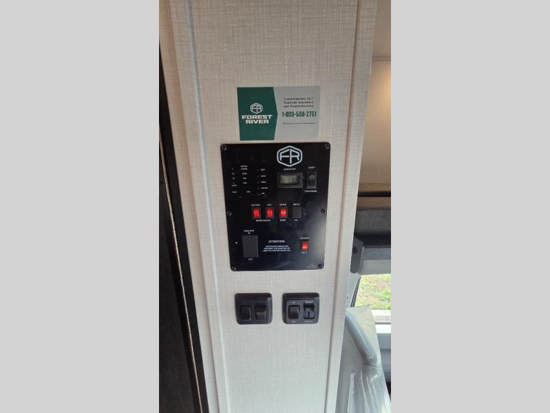 With any Forester LE Class C gas motorhome by Forest River, you will enjoy premier features such as the backup camera/side view cameras with a 3-way monitor, the Winegard Air 360+ digital antenna, and the 15,000 BTU ceiling ducted, ultra quiet roof air with a heat pump when traveling during the warmer months. The exterior includes aluminum framed laminated sidewalls, gel coat exterior fiberglass, a one-piece fiberglass front cap, and slide room toppers. Some of the interior top features are the Maxx Air multi-speed power fan with a cover in the kitchen, the high pressure oxygen infused shower head, and the blackout roller shades for a good night's sleep. Make your selection today!