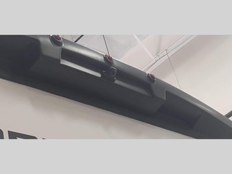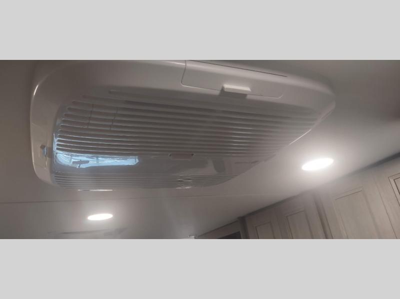On the outside, this coach is just as impressive — boasting aluminum-framed laminated sidewalls, a gel-coat fiberglass exterior, a one-piece fiberglass front cap, and slide room toppers for added protection and durability. Inside, you'll appreciate thoughtful touches like the Maxx Air multi-speed power fan in the kitchen, a high-pressure oxygen-infused shower head, and blackout roller shades for a peaceful night’s rest.
