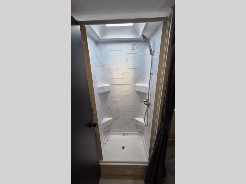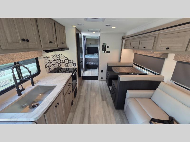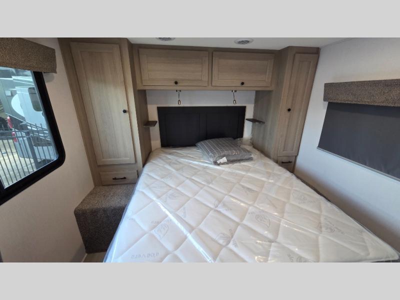 With any Forester LE Class C gas motorhome by Forest River, you will enjoy premier features such as the backup camera/side view cameras with a 3-way monitor the, Winegard Air 360+ digital antenna, and the 15,000 BTU ceiling ducted, ultra quiet roof air with a heat pump when traveling during the warmer months. The exterior includes aluminum framed laminated sidewalls, gel coat exterior fiberglass, a one-piece fiberglass front cap, and slide room toppers. Some of the interior top features are the Maxx Air multi-speed power fan with a cover in the kitchen, the high pressure oxygen infused shower head, and the blackout roller shades for a good night's sleep. Make your selection today!