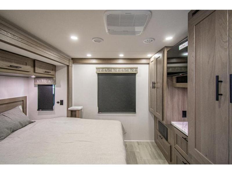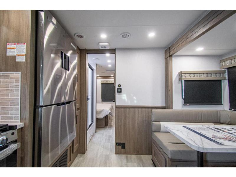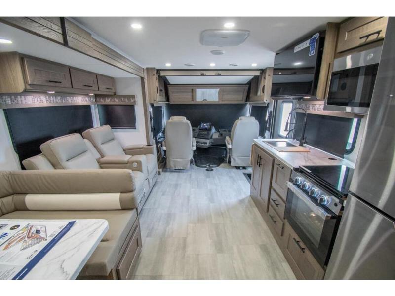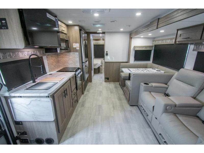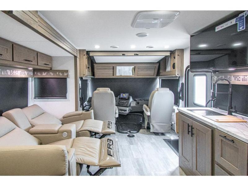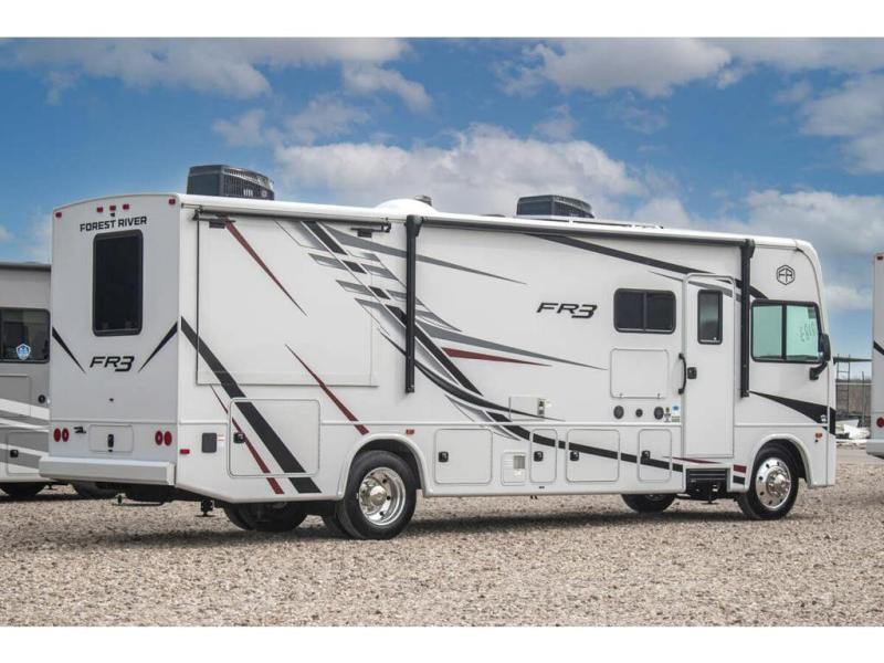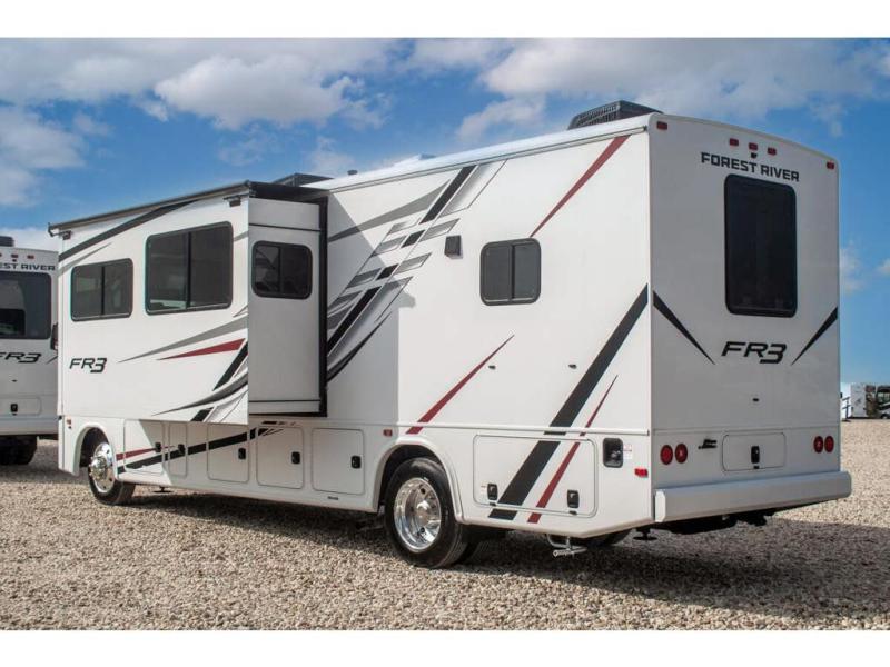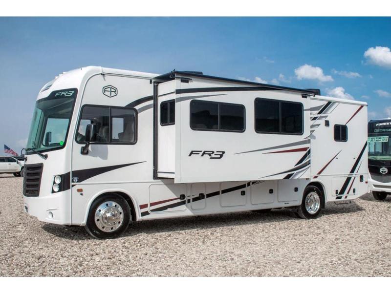 With each FR3 Class A gas motorhome by Forest River, you will find an easy-to-drive coach with a spacious interior allowing you to gather with friends and family with convenience and style found throughout! Each is built with vacuum-bonded construction, a one-piece fiberglass roof with extended rain spouts, a steel firewall and A-pillar extension, Bi-LED headlamps and lower LED fog lights, and grey Rotocast storage boxes with drains. Inside, you will enjoy black hardware, appliances, plumbing fixtures, and a glass shower door frame. You will also find a stainless steel kitchen sink with a bamboo cutting board and roll-up dryer, heavy-duty full-extension ball bearing drawer guides, dual-access dinette storage with doors, and nightstands with charging stations to keep your cellphones ready for whatever is next. Make your selection today!