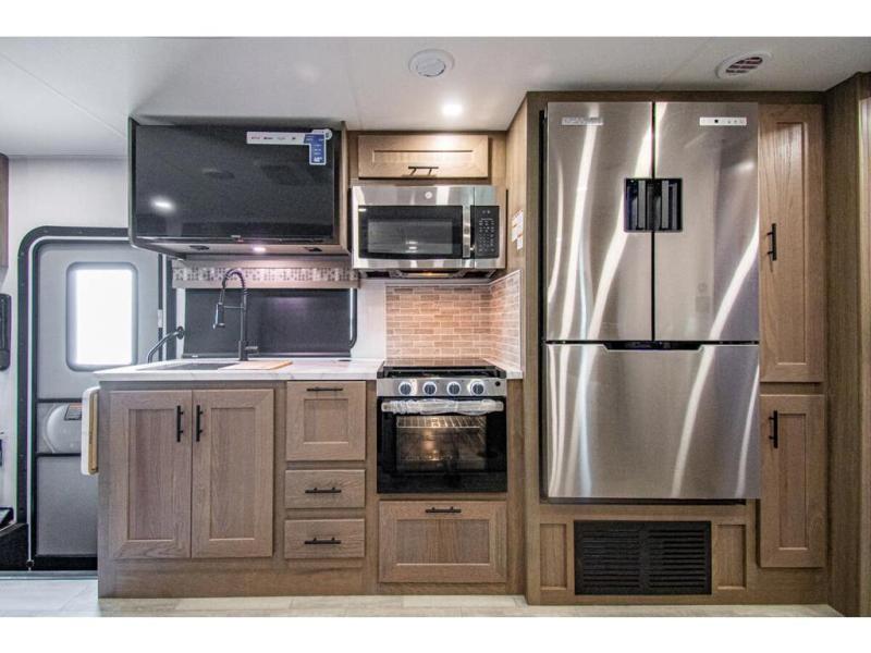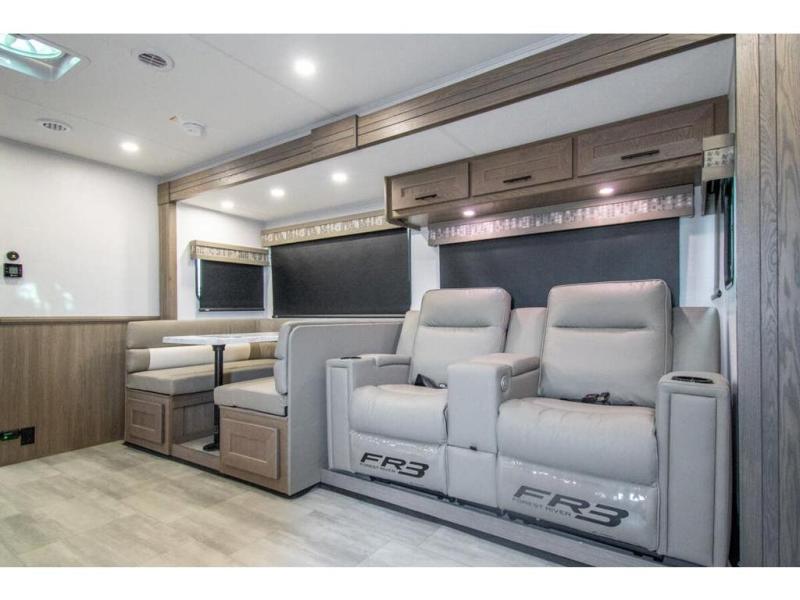 Whether you travel with your spouse, grandkids or friends, this FR3 Class A gas motorhome allows you to travel in style with plenty of additional sleeping choices from the power overhead bunk to the furniture once they are set up at night. You can dine at the wrap-around booth dinette, relax on the hide-a-bed sofa, and make full meals in the kitchen which also includes a residential microwave and countertop extension. The separated bathroom allows someone to take a shower while another freshens up with the private sink and toilet, or maybe you decide to close this area off within the bedroom. Every night you can sleep like a king while watching the 32" LED 12V TV in the bedroom, and maybe you decided to add the washer/dryer option to keep everything clean while on the road.