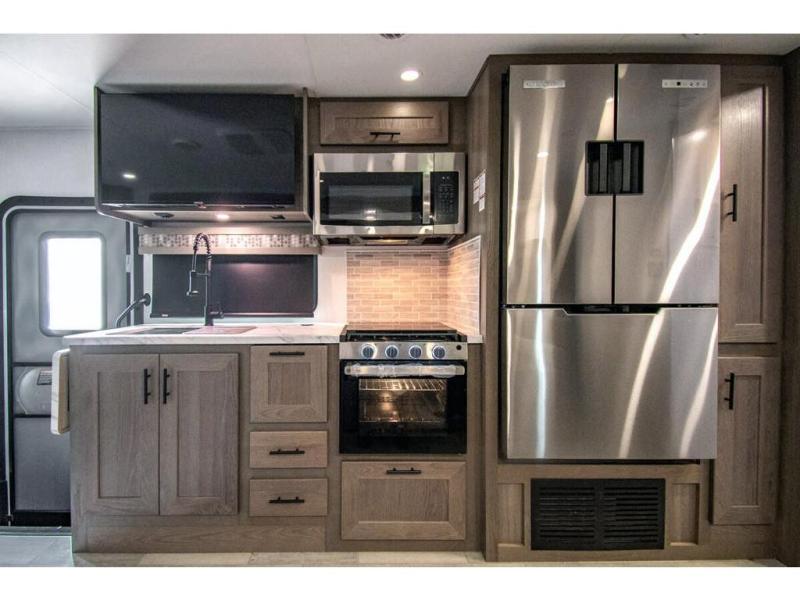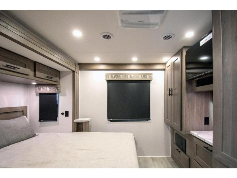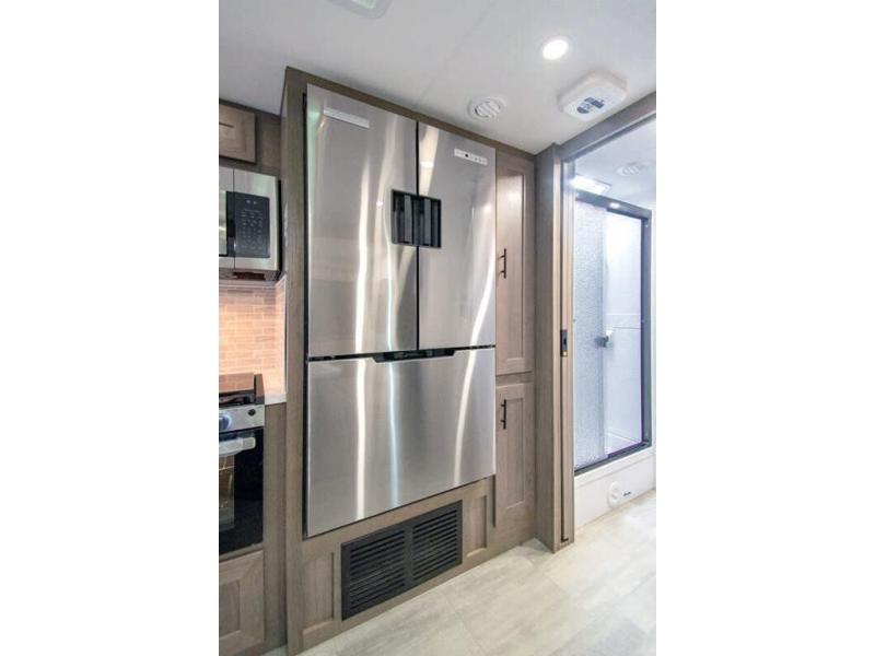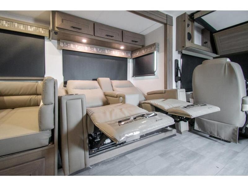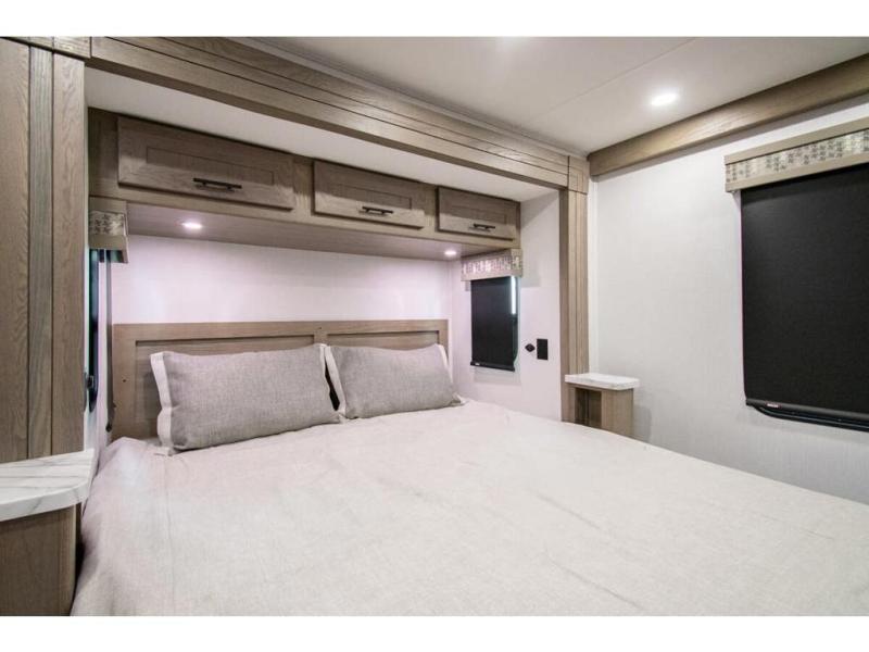 Whether you travel with your spouse, grandkids or friends, this FR3 Class A gas motorhome allows you to travel in style with plenty of additional sleeping choices from the power overhead bunk to the furniture once they are set up at night. You can dine at the wrap-around booth dinette, relax on the hide-a-bed sofa, and make full meals in the kitchen which also includes a residential microwave and countertop extension. The separated bathroom allows someone to take a shower while another freshens up with the private sink and toilet, or maybe you decide to close this area off within the bedroom. Every night you can rest nice and snug while watching the 32" LED 12V TV in the bedroom, and maybe you decided to add the washer/dryer option to keep everything clean while on the road.