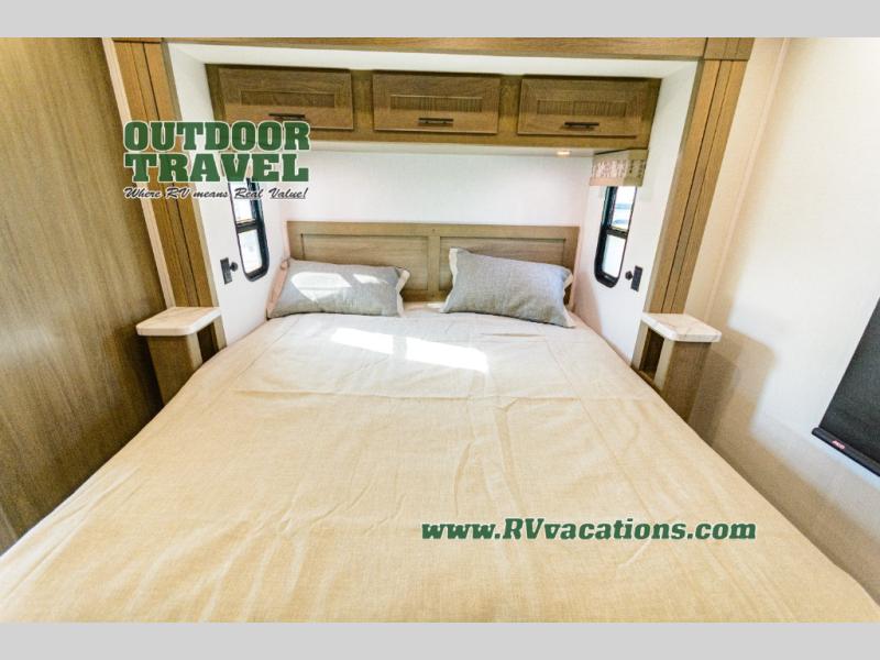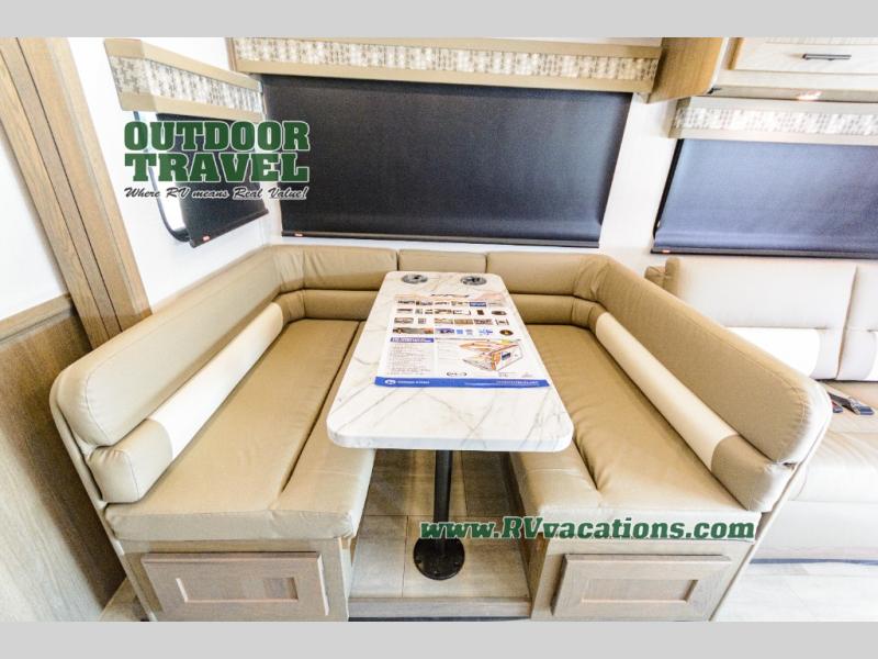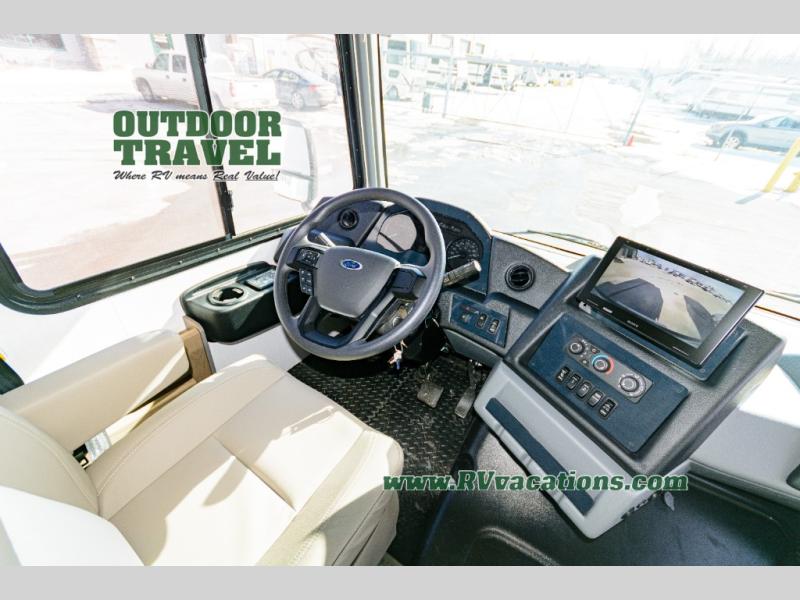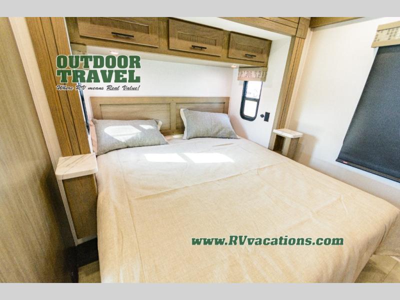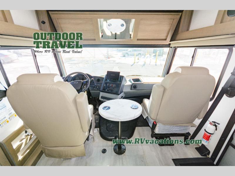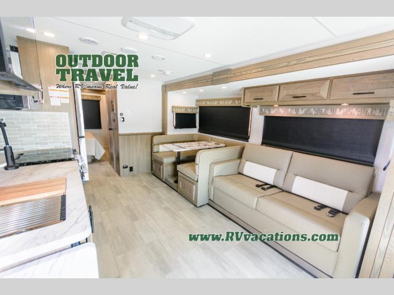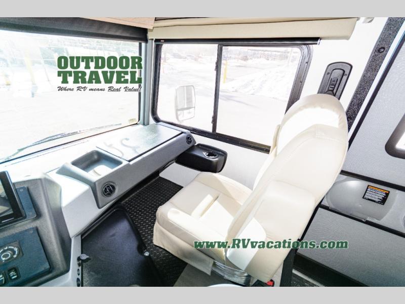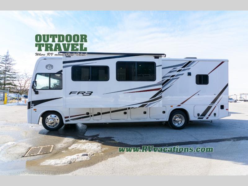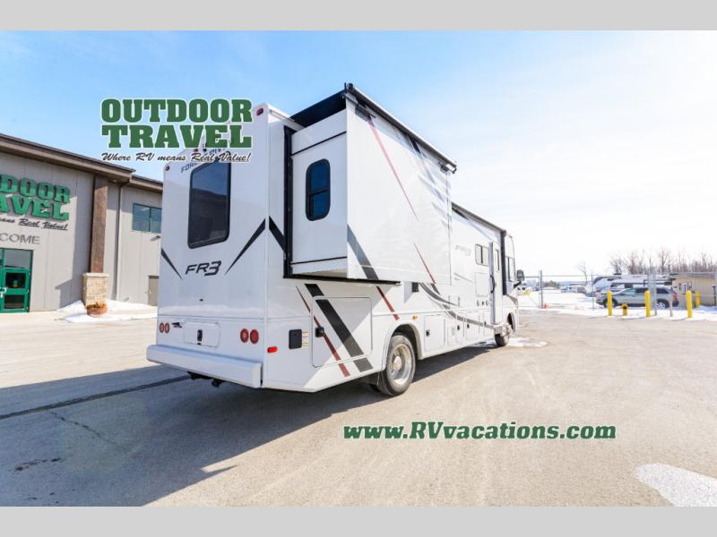 With each FR3 Class A gas motorhome by Forest River, you will find an easy-to-drive coach with a spacious interior allowing you to gather with friends and family with convenience and style found throughout! Each is built with vacuum-bonded construction, a one-piece fiberglass roof with extended rain spouts, a steel firewall and A-pillar extension, Bi-LED headlamps and lower LED fog lights, and grey Rotocast storage boxes with drains. Inside, you will enjoy black hardware, appliances, plumbing fixtures, and a glass shower door frame. You will also find a stainless steel kitchen sink with a bamboo cutting board and roll-up dryer, heavy-duty full-extension ball bearing drawer guides, dual-access dinette storage with doors, and nightstands with charging stations to keep your cellphones ready for whatever is next. Make your selection today!
