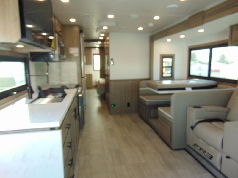 With any FR3 Plus Class A gas motorhome by Forest River, you will find a step up from the FR3, including a modern slick exterior with full-body paint options! Since this coach includes vacuum bonded construction, you can enjoy traveling for years to come, and the full fiberglass front cap provides added protection. Each drive is made comfortable by the two-tone ultra leather captain's seats, plus there is a Sony 10.1" dash radio that includes a color back-up monitor and more to make the journey that much smoother! You will stay powered up by the 6.0kW NPS Yamaha generator, 200W solar panels with a Go Power solar controller, (2) 100 Amp Battle Born lithium batteries, and more. The interior of the FR3 Plus includes solid surface kitchen countertops, IVC residential vinyl flooring, stainless steel kitchen features, and many more comforts!