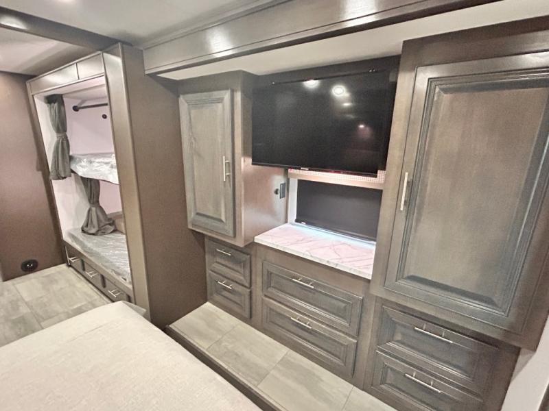 BUNK BEDS SLIDOUT / POWER THEATER SEATING RECLINERS / KING BED / SOLAR PANEL W/ INVERTER 6000 WATT YAMAHA GENERATOR/