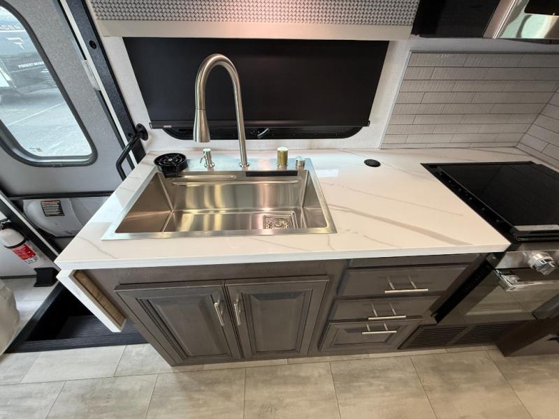 A spacious design and true luxury come together to create these Forest River Georgetown 5 Series Class A gas motorhomes! Their solid surface kitchen countertops, day and night shades throughout, and designer bedspread will have you feeling right at home. The color side and rear cameras help to prevent any dings or bumps while you travel, and the automatic hydraulic leveling jacks will keep your unit leveled wherever you set up. Durable construction consists of a crowned roof, 2" aluminum framed vacuum bonded gel coated sidewalls, plus high density block foam insulation that will allow you to travel at any time of the year. You will appreciate the 50 Amp service, two house batteries, and 6,000 watt Yamaha generator to keep you powered up. An outside shower is also included on all models, along with rotocast storage compartments with drains, a power awning, and so much more!