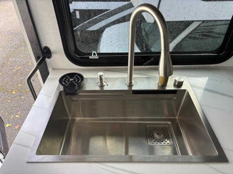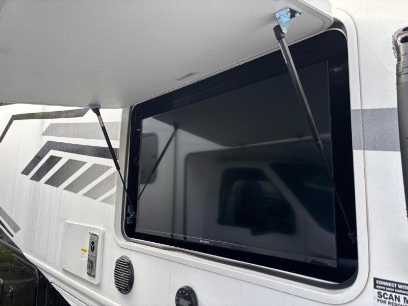 You won't have to search far for comfort in this spacious coach for up to eight! The little ones will love having bunk beds to sleep on, plus there is a full bath right across the hall for convenience. The master bedroom with a king bed slide out will have you feeling right at home, and the second full bath includes ample counter space to set out your necessities. Everyone can meet in the main living area to relax on the hide-a-bed sofa, or you can choose the optional power theater seats if you don't need more sleeping space. You will surely never get bored with a 40" LED TV in the living room, 32" LED TV in the bedroom, plus a 40" LED TV outdoors with a radio and exterior speakers!
