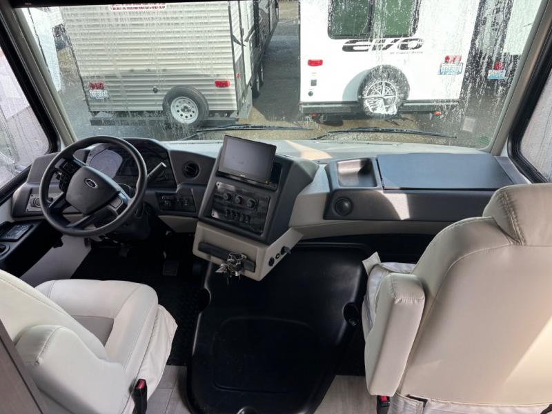 A spacious design and true luxury come together to create these Forest River Georgetown 5 Series Class A gas motorhomes! Their solid surface kitchen countertops, day and night shades throughout, and designer bedspread will have you feeling right at home. The color side and rear cameras help to prevent any dings or bumps while you travel, and the automatic hydraulic leveling jacks will keep your unit leveled wherever you set up. Durable construction consists of a crowned roof, 2" aluminum framed vacuum bonded gel coated sidewalls, plus high density block foam insulation that will allow you to travel at any time of the year. You will appreciate the 50 Amp service, two house batteries, and 6,000-watt Yamaha generator to keep you powered up. An outside shower is also included on all models, along with rotocast storage compartments with drains, a power awning, and so much more!