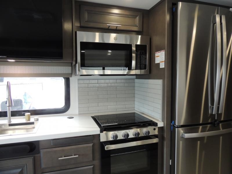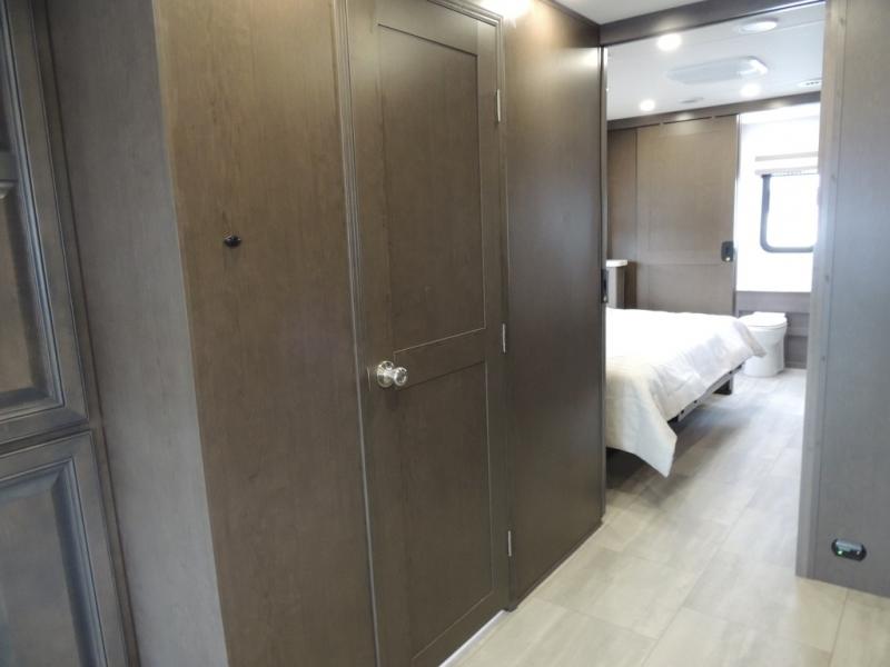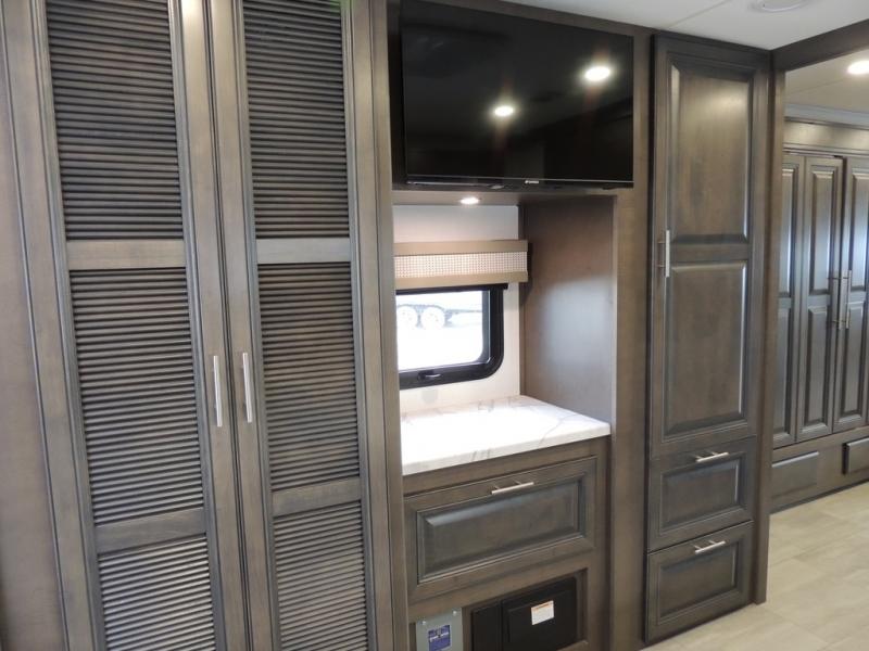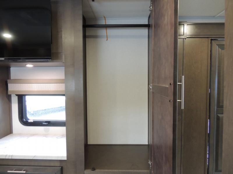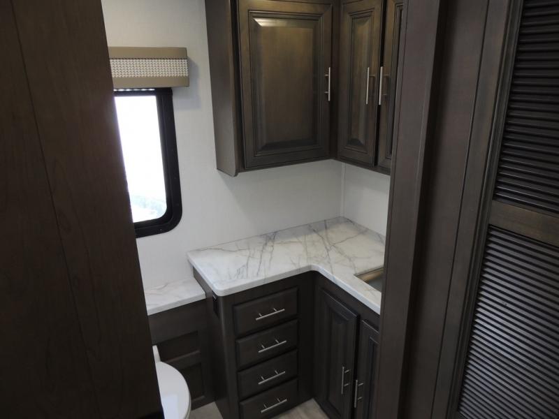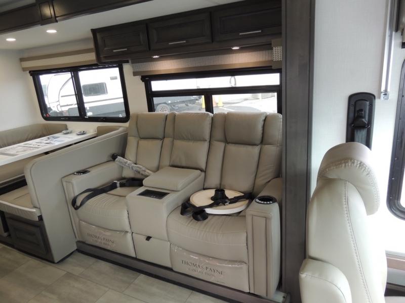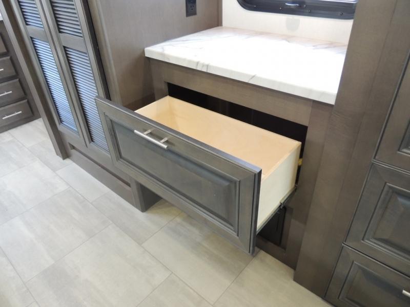 A spacious design and true luxury come together to create these Forest River Georgetown 5 Series Class A gas motorhomes! Their solid surface kitchen countertops, day and night shades throughout, and designer bedspread will have you feeling right at home. The color side and rear cameras help to prevent any dings or bumps while you travel, and the automatic hydraulic leveling jacks will keep your unit leveled wherever you set up. Durable construction consists of a crowned roof, 2" aluminum framed vacuum bonded gel coated sidewalls, plus high density block foam insulation that will allow you to travel at any time of the year. You will appreciate the 50 Amp service, two house batteries, and 6,000-watt Yamaha generator to keep you powered up. An outside shower is also included on all models, along with rotocast storage compartments with drains, a power awning, and so much more!