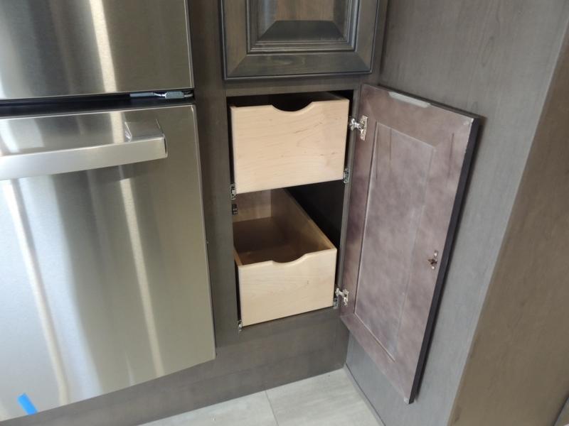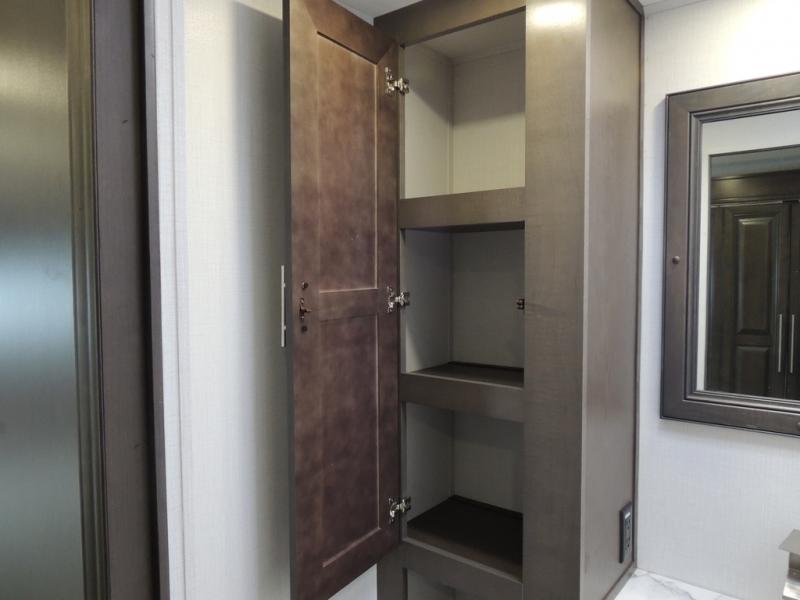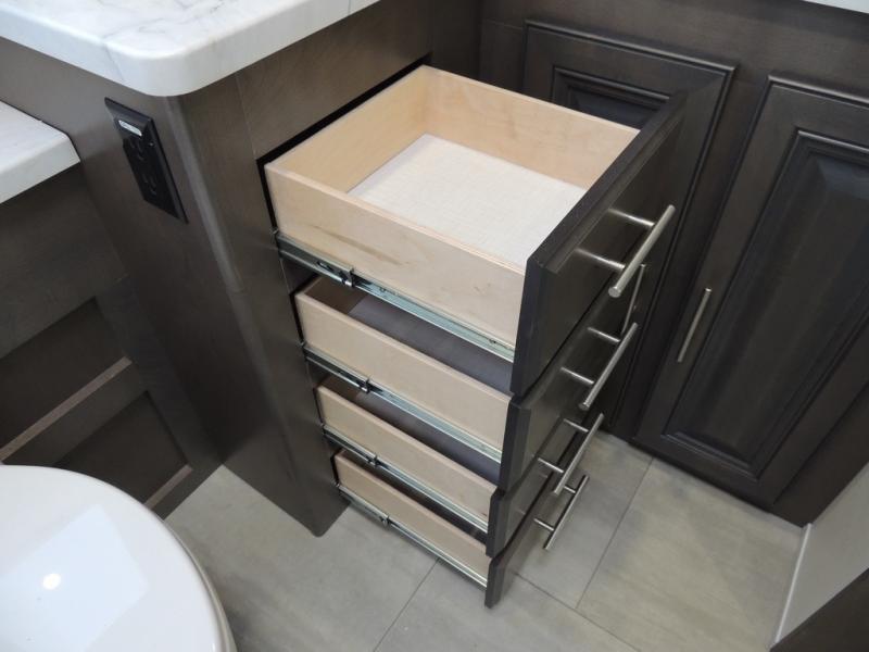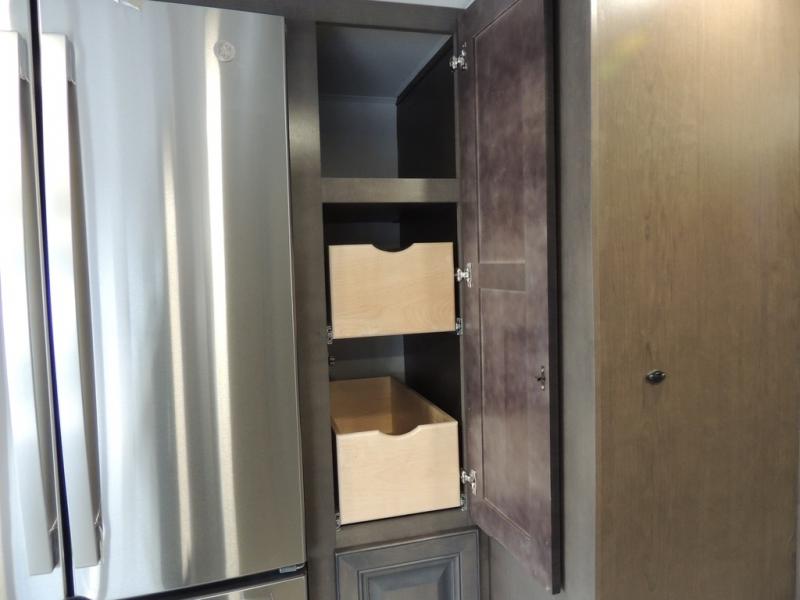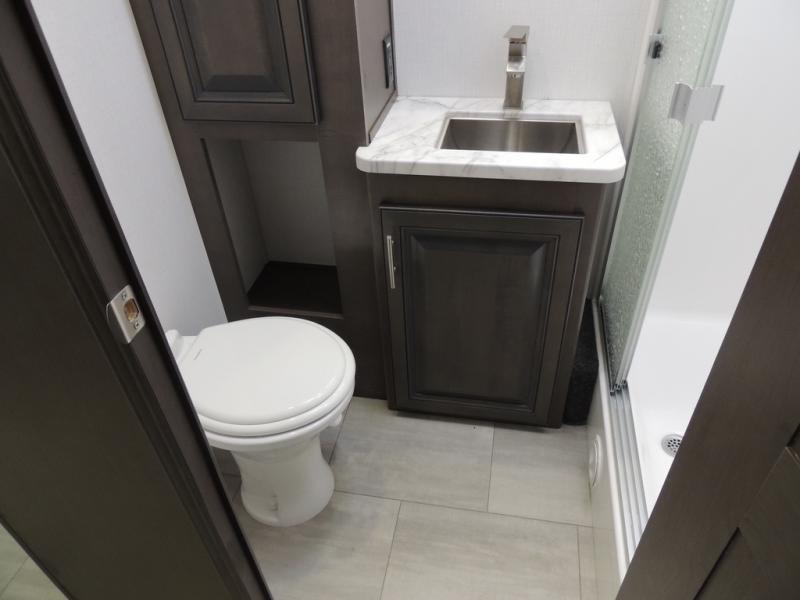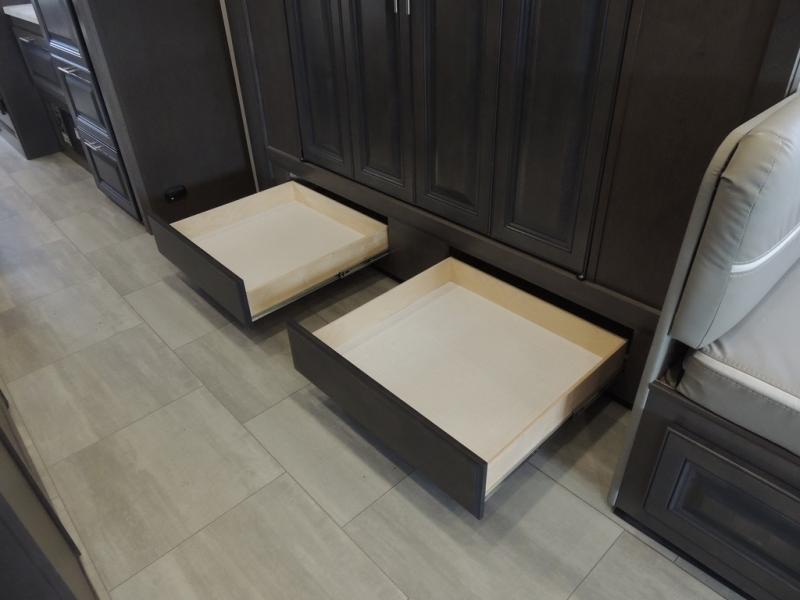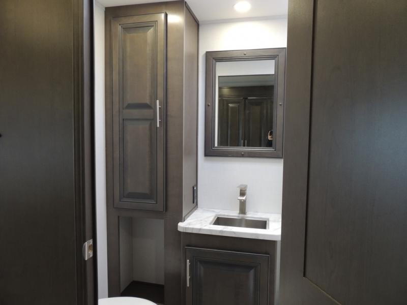You won't have to search far for comfort in this spacious coach for up to eight! The little ones will love having bunk beds to sleep on, plus there is a full bath right across the hall for convenience. The master bedroom with a king bed slide out will have you feeling right at home, and the second full bath includes ample counter space to set out your necessities. Everyone can meet in the main living area to relax on the hide-a-bed sofa, or you can choose the optional power theater seats if you don't need more sleeping space. You will surely never get bored with a 40" LED TV in the living room, 32" LED TV in the bedroom, plus a 40" LED TV outdoors with a radio and exterior speakers!