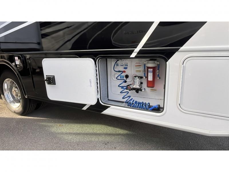 A spacious design and true luxury come together to create these Forest River Georgetown 5 Series Class A gas motorhomes! Their solid surface kitchen countertops, day and night shades throughout, and designer bedspread will have you feeling right at home. The color side and rear cameras help to prevent any dings or bumps while you travel, and the automatic hydraulic leveling jacks will keep your unit leveled wherever you set up. Durable construction consists of a crowned roof, 2" aluminum framed vacuum bonded gel coated sidewalls, plus high density block foam insulation that will allow you to travel at any time of the year. You will appreciate the 50 Amp service, two house batteries, and 6,000-watt Yamaha generator to keep you powered up. An outside shower is also included on all models, along with rotocast storage compartments with drains, a power awning, and so much more!