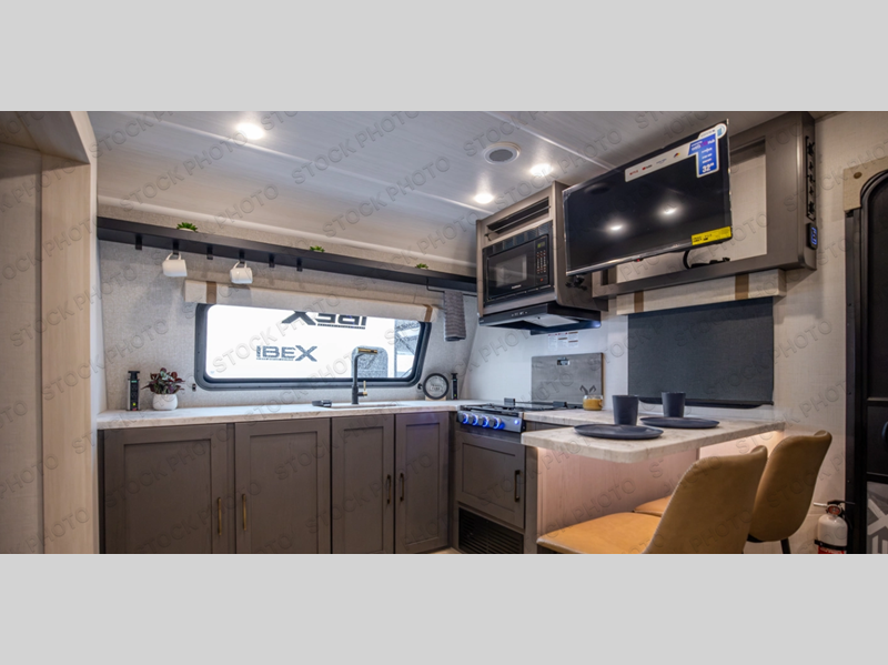 The Forest River IBEX travel trailers are extended season ready, and adventure approved! They are built with a sealed underbelly with forced heat and radiant foil barrier, along with an aluminum framed floor and 12V tank heaters. There are also all-terrain tires with TPMS, a 200-watt solar panel, a power tongue jack, and roof ladder prep. Inside, you'll love the Surf(X) seamless countertops and the large kitchen sink with a cup washer, plus there is Bluetooth audio with marine grade speakers so you can listen to your favorite tunes. The optional Black Canyon Beast Mode Package is available with an independent suspension, 400 watts of solar, a fresh water filter, and a Maxxair roof vent cover.