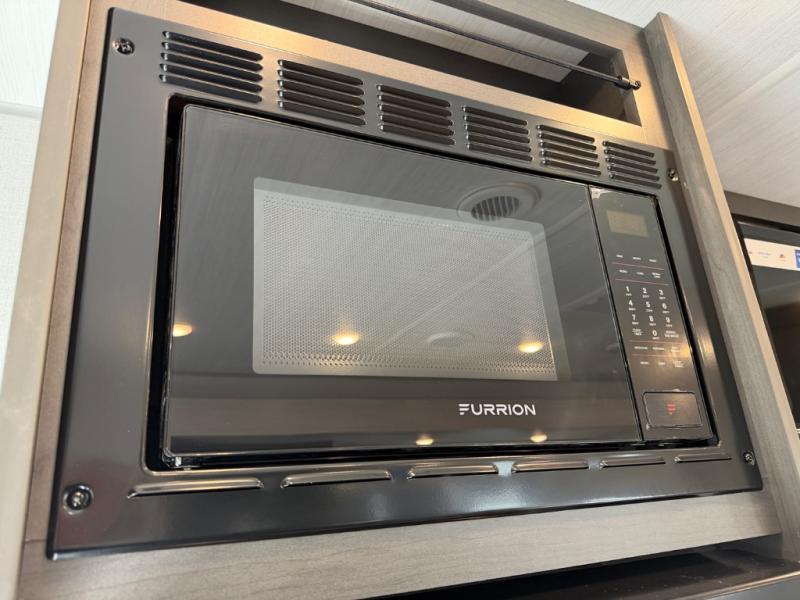 Enjoy fun camping trips in this front kitchen travel trailer! The chef of your group will appreciate the ample counter space to prep meals and set out snacks, plus there is a countertop with stools where you can enjoy your morning coffee at. A tri-fold sofa slide out provides more seating space, as well as sleeping space for a guest or two little ones. You can freshen up each day in the walk-thru bath, and the rear master bedroom includes a queen bed for more comfort. There are also dual bedroom wardrobes, an overhead cabinet, and a bench where you can sit to pull your hiking boots on.