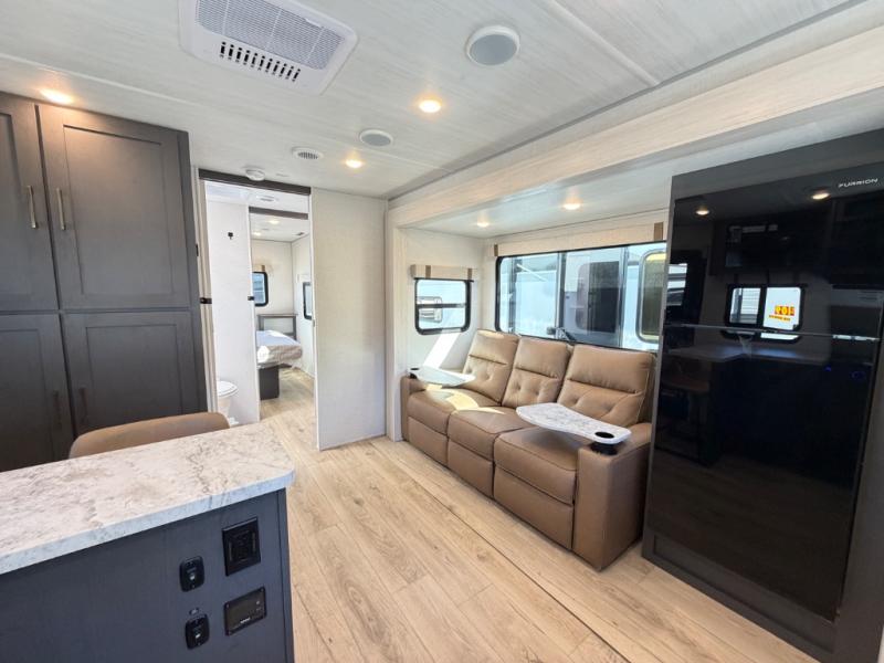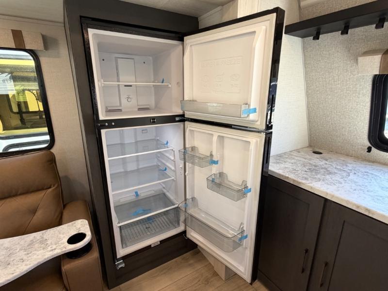 The Forest River IBEX travel trailers are extended season ready, and adventure approved! They are built with a fully walkable PVC roof, a welded aluminum structure, and laminated walls and slide outs with Azdel composite panels. There are also all-terrain tires with TPMS, a hot and cold exterior spray port, and large holding tanks for added convenience when you're set up off-grid. The USB-C ports inside and out will help you keep your electronics charged, and the premium window treatments will make your trailer feel more like home. The optional Black Canyon Beast Mode Package is available with an independent suspension, a 400-watt solar package, a fresh water filter, and a Maxxair roof vent cover.