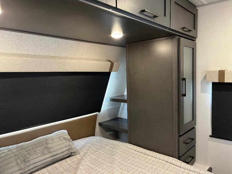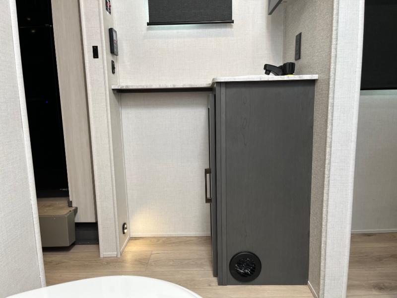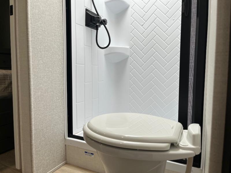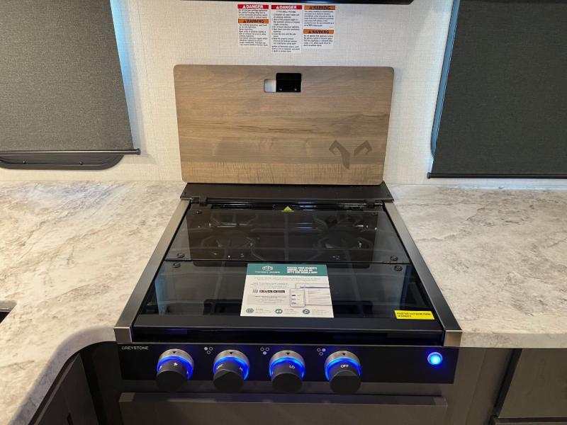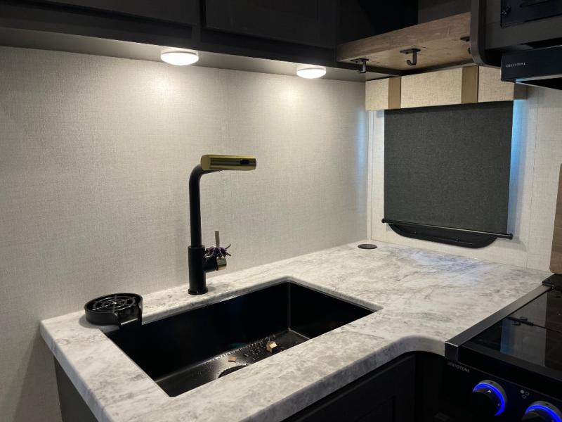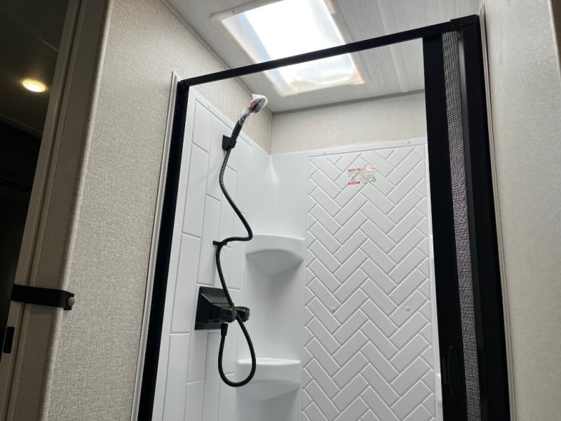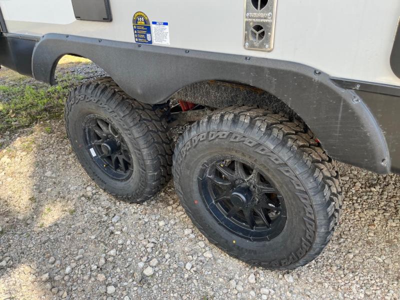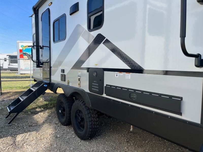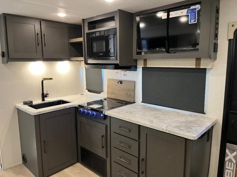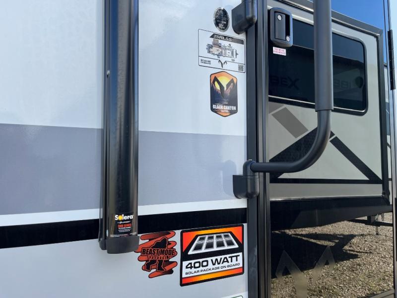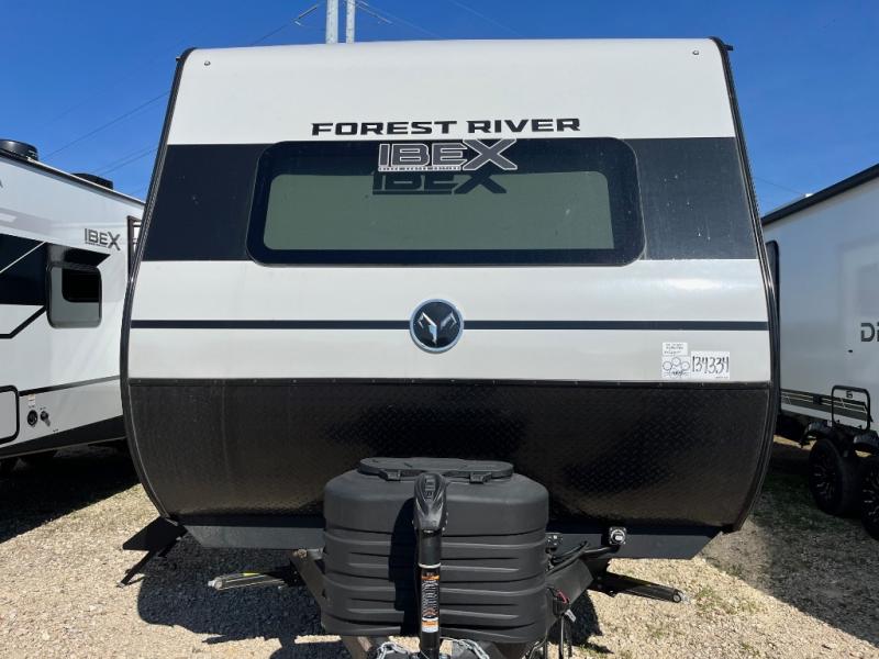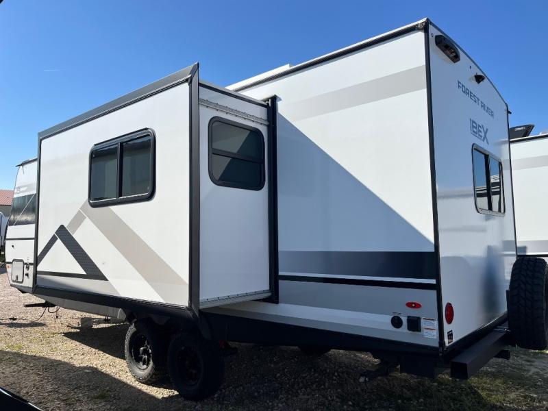 The Forest River IBEX travel trailers are extended season ready, and adventure approved! They are built with a sealed underbelly with forced heat and radiant foil barrier, along with an aluminum framed floor and 12V tank heaters. There are also all-terrain tires with TPMS, a 200-watt solar panel, a power tongue jack, and roof ladder prep. Inside, you'll love the Surf(X) seamless countertops and the large kitchen sink with a cup washer, plus there is Bluetooth audio with marine grade speakers so you can listen to your favorite tunes. The optional Black Canyon Beast Mode Package is available with an independent suspension, 400 watts of solar, a fresh water filter, and a Maxxair roof vent cover.