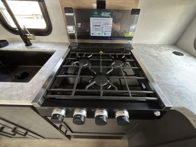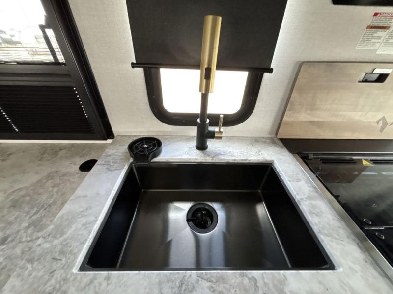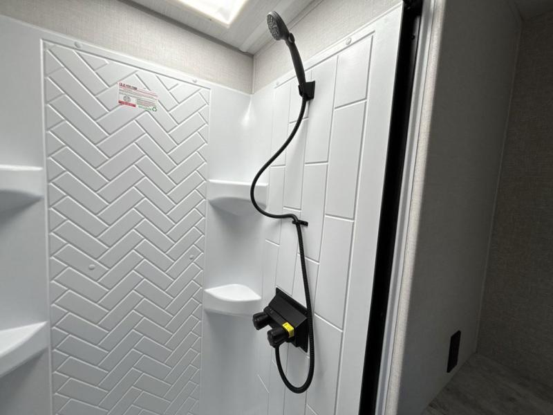 The Forest River IBEX travel trailers are extended season ready, and adventure approved! They are built with a sealed underbelly with forced heat and radiant foil barrier, along with an aluminum framed floor and 12V tank heaters. There are also all-terrain tires with TPMS, a 200-watt solar panel, a power tongue jack, and roof ladder prep. Inside, you'll love the Surf(X) seamless countertops and the large kitchen sink with a cup washer, plus there is Bluetooth audio with marine grade speakers so you can listen to your favorite tunes.