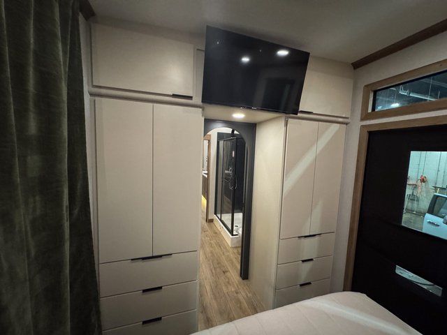 At the back of the trailer, you’ll find a peaceful bedroom featuring:
