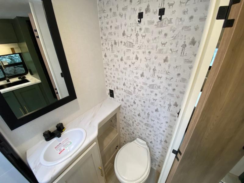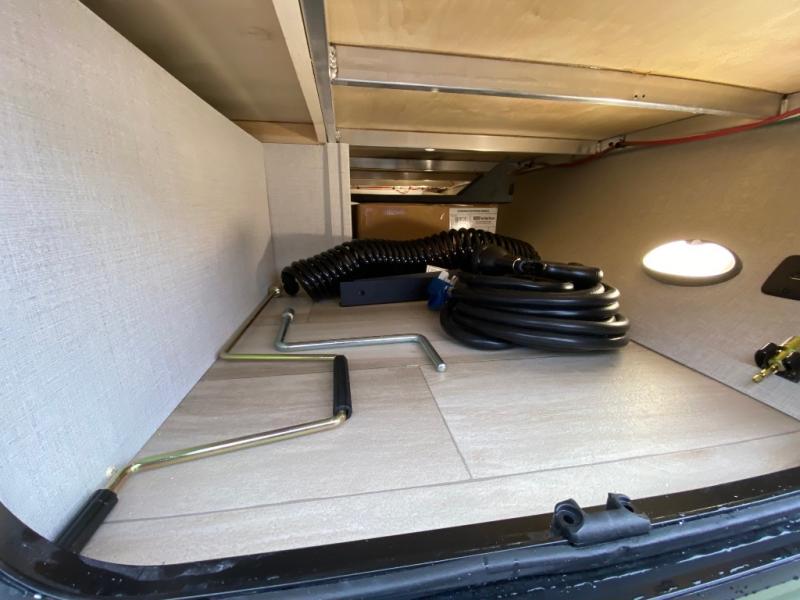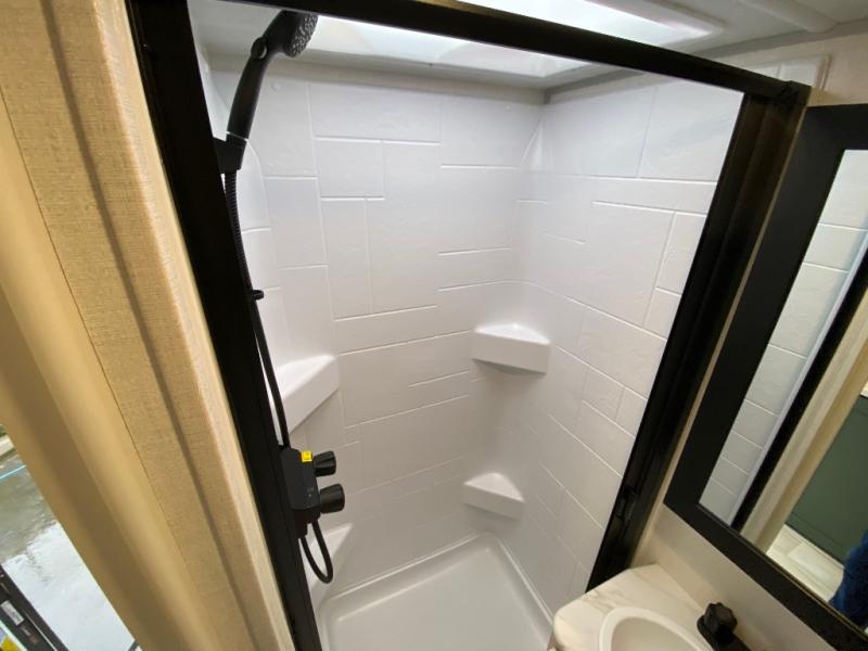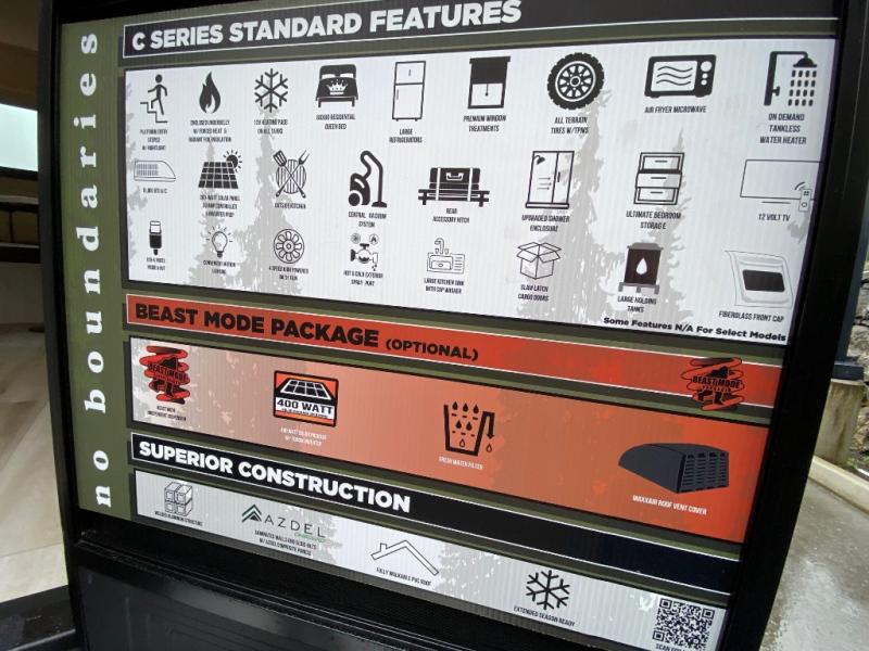 This easy to tow trailer is perfect for weekend trips to the lake! Once you're set up at camp, put out the patio awning, make lunch on the outside kitchen, and grab your camp chairs from the slam latch cargo doors with pass-thru lighting. The kitchen includes a cooktop and microwave, plus a pantry and refrigerator for food storage. When it's time to call it a night, the front queen bed with a U-shaped dinette is sure to bring comfort! When the optional Beast Mode Package on this model is chosen, you'll enjoy a 400-watt solar package, a fresh water filter, a Maxxair roof vent cover, plus a Beast Mode independent suspension for better handling.