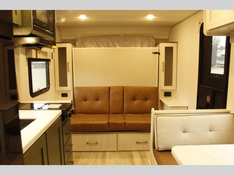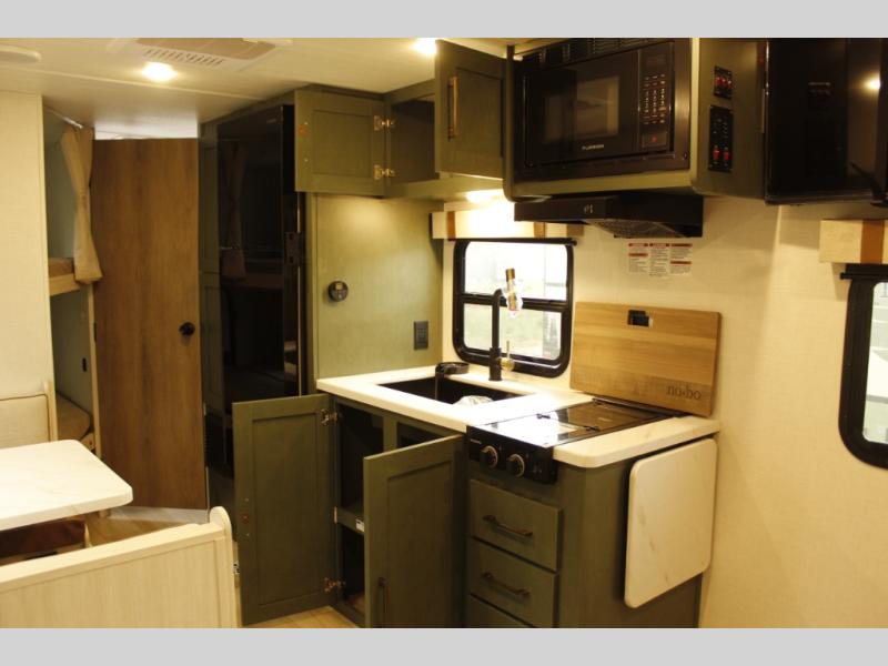 With this No Boundaries travel trailer, you can go to places you've never been before! The patio awning will protect you while you're outside having fun, and once you make your way inside, you can sit down at the booth dinette for some dinner. The 44" x 74" double-size bunks will give you extra sleeping space without taking up too much room, and the Murphy bed also utilizes space well by folding away during the day to reveal a sofa. Outside, you'll find slam latch cargo doors with pass-thru lighting, an outside kitchen, a pre-installed solar panel, and more! When the optional Beast Mode Package on this model is chosen, you'll enjoy a 400-watt solar package, a fresh water filter, a Maxxair roof vent cover, plus a Beast Mode independent suspension for better handling.