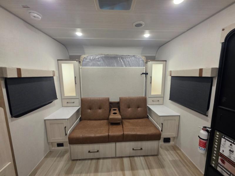 You won't be bound by boring travels any longer with this No Boundaries travel trailer! You can go just about anywhere with this rugged trailer, and you will find many features that will make your life easier while you're away. The entertainment center will give you something to do on a rainy day, and the kitchen will provide you with the tools needed to whip up a meal whenever you're hungry. The rear bathroom has a linen closet for your towels, and the dinette slide adds space for you to lounge in this trailer. Up front, you'll be able to rest on a sofa during the day, and you can reposition this sofa to showcase a Murphy bed at night for sleeping. This model also includes a walk-in pantry for snacks, dry goods, and more!